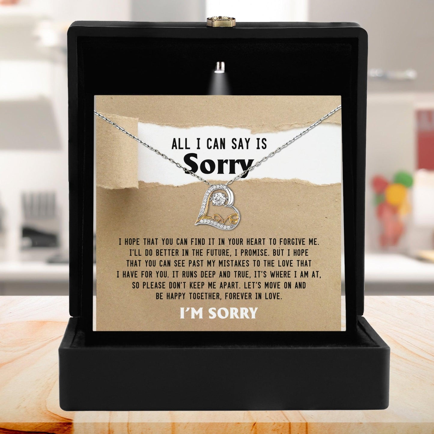 Sometimes the words are hard to say — but this gift says them for you. The Love Dancing Heart Pendant Necklace is more than jewelry; it’s a heartfelt promise to make things right, paired with a powerful apology message card that speaks directly from the heart.