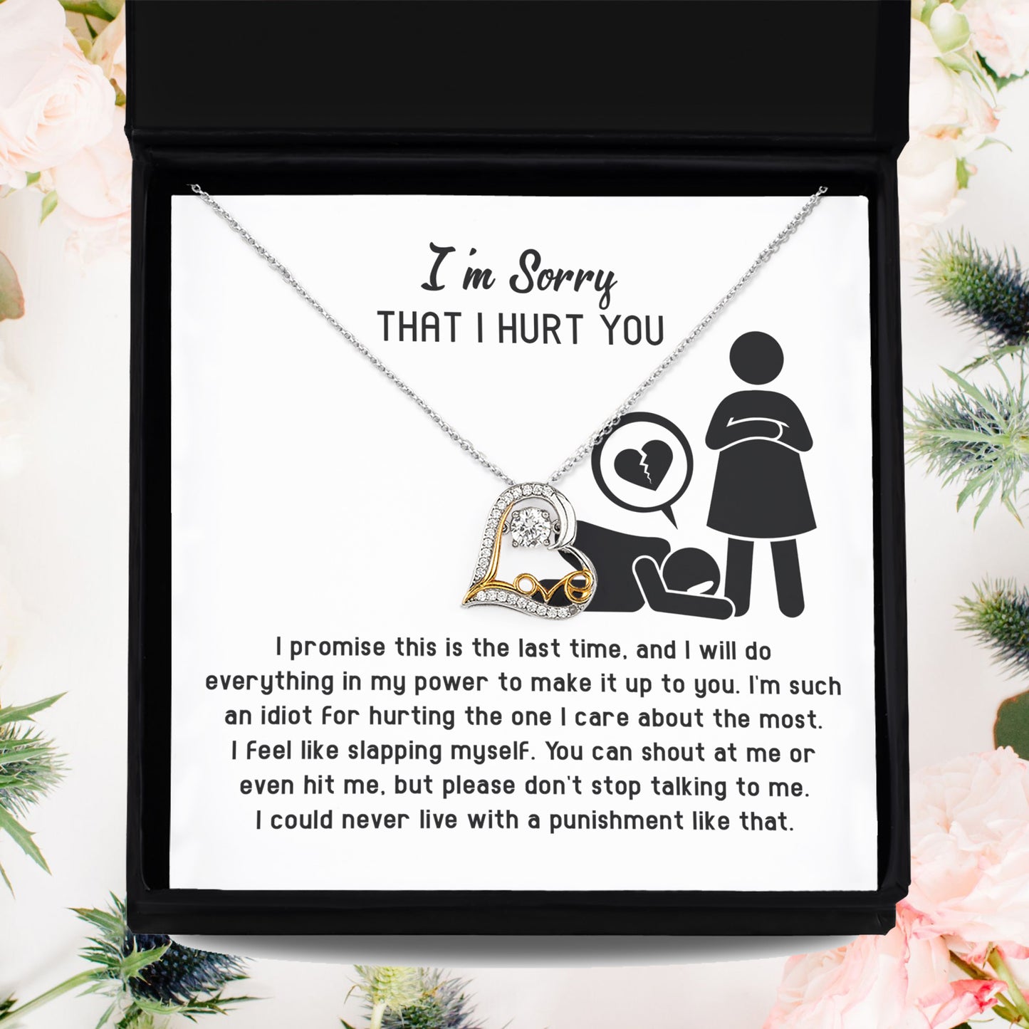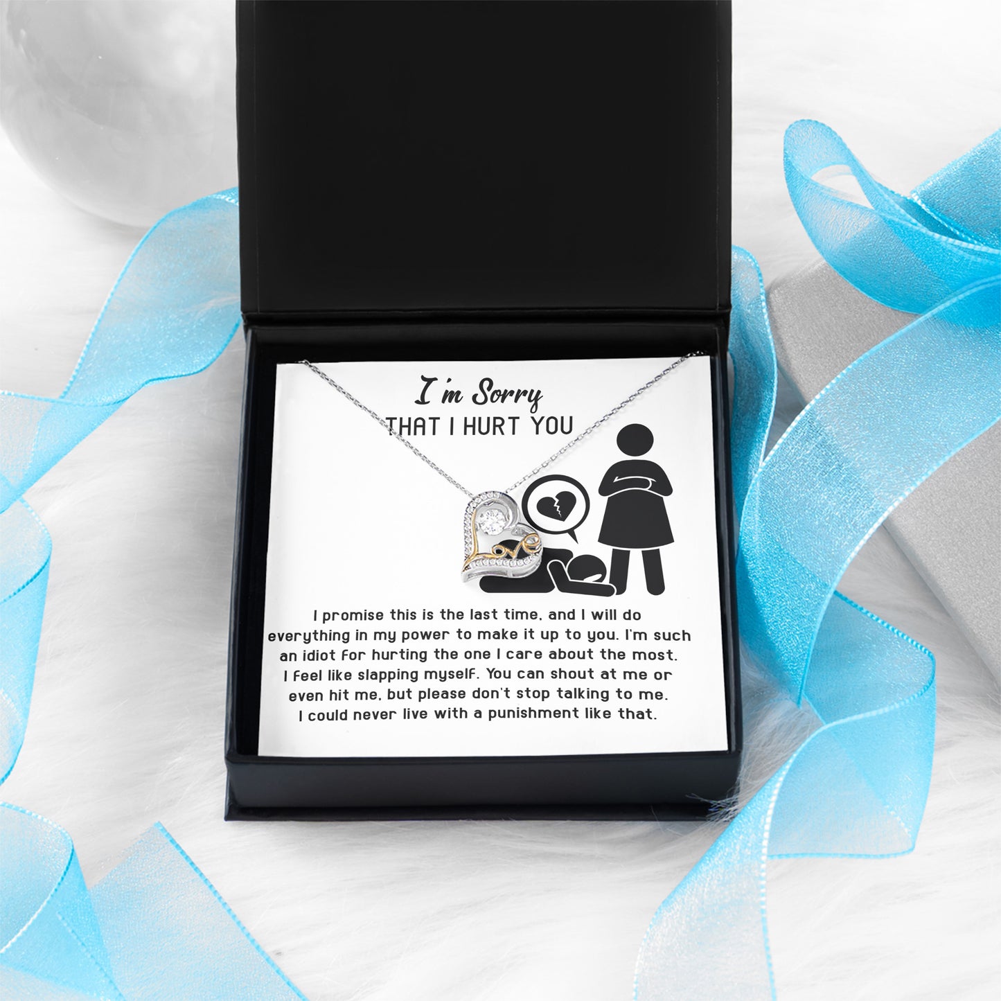 Crafted with a sparkling cubic zirconia centerpiece that shimmers with every movement, this necklace symbolizes the love that continues to shine even through mistakes and hardships. The elegant design makes it perfect for everyday wear or special occasions, while the enclosed message card ensures your apology will be remembered forever.