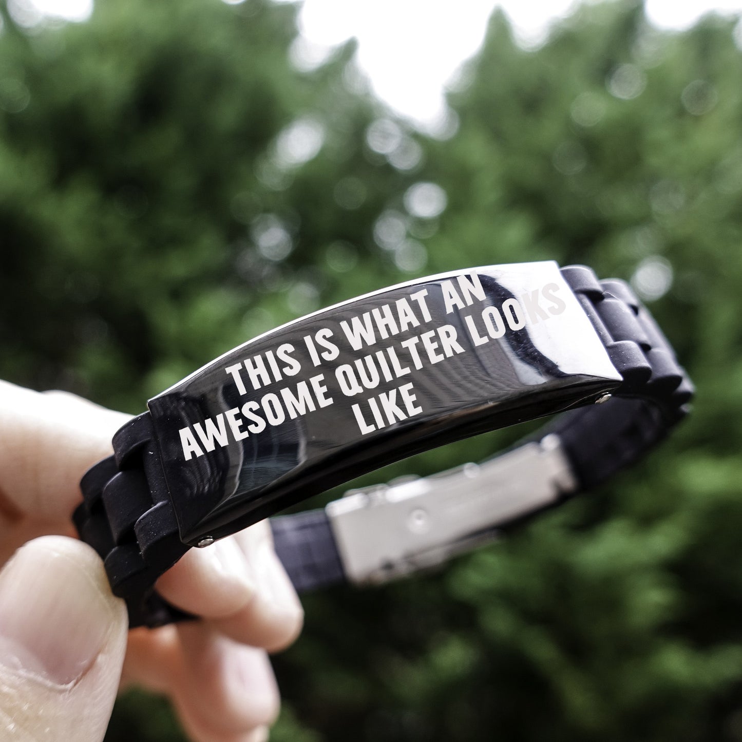 Awesome Quilter Bracelet – Black Silicone Glidelock Band with Bold Pride Engraving – Gift for Confident Sewers