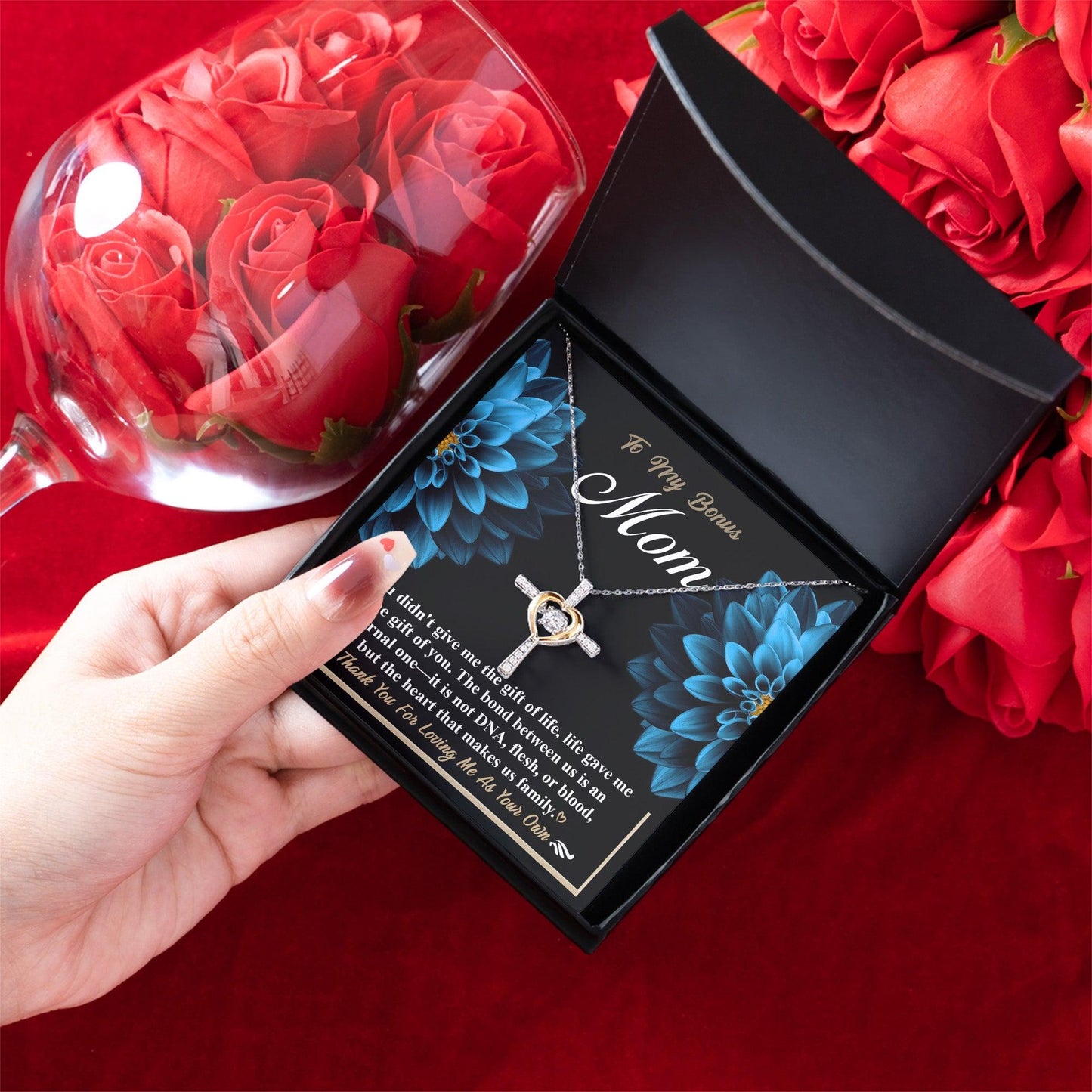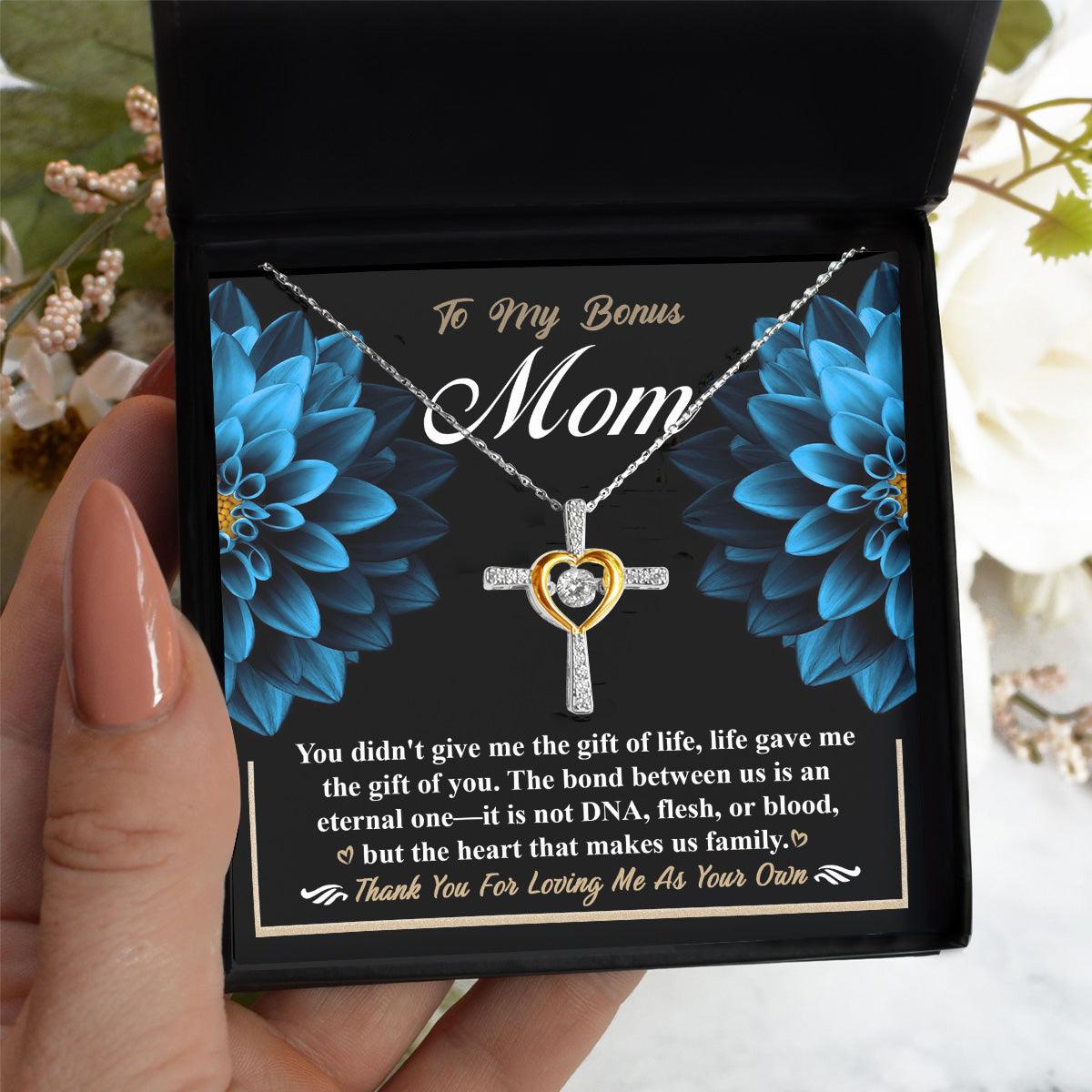 This elegant Cross dancing necklace is the perfect gift for your Bonus Mom. It features a beautiful message card that reads, "To My Bonus Mom, You didn't give me the gift of life; life gave me the gift of you. The bond between us is an eternal one--it is not DNA, flesh, or blood, but the heart that makes us family. Thank you for loving me as your own."