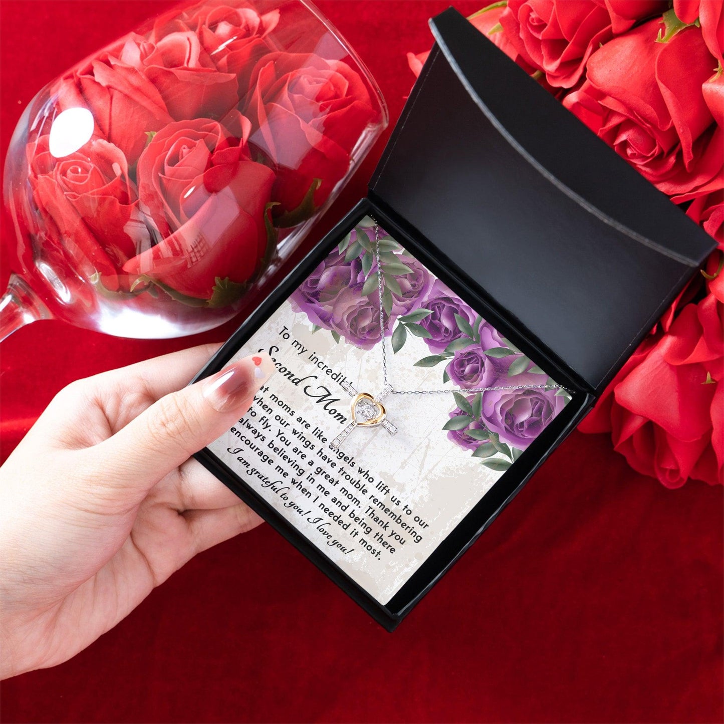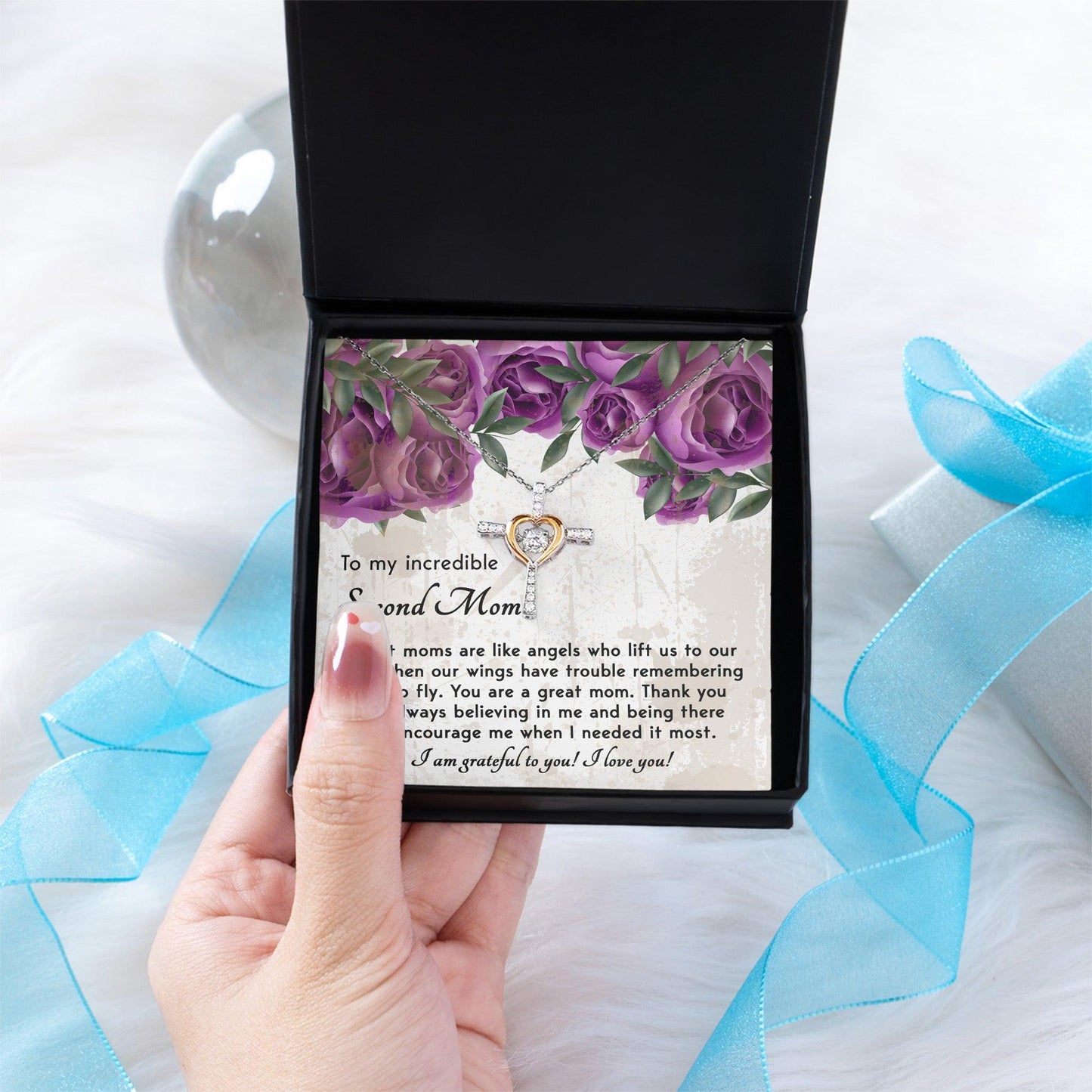 A beautiful gift for your Bonus Mom with a heartfelt message, "To My incredible Second Mom. Great moms are like angels who lift us to our feet when our wings have trouble remembering how to fly. You are a great mom. Thank you for always believing in me and being there to encourage me when I needed it most. I am grateful to you! I love you!"