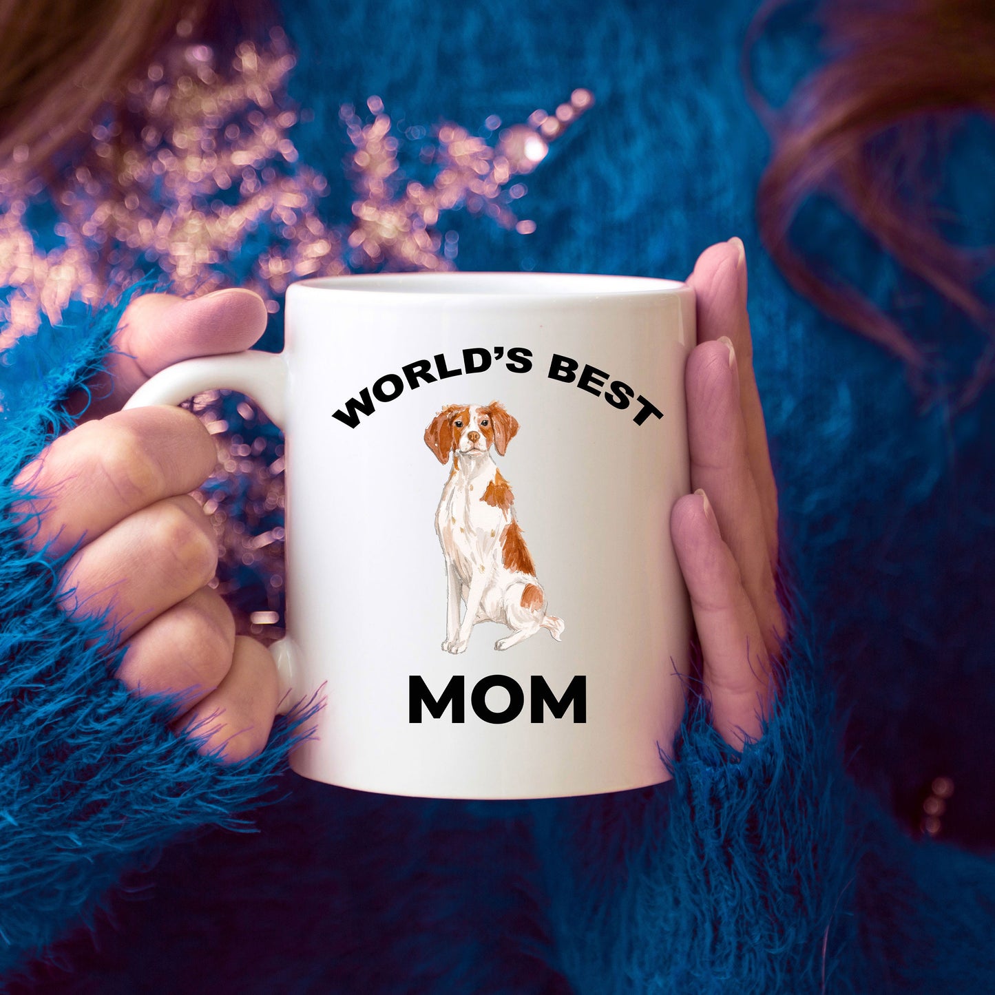 Brittany Spaniel Dog Mom Coffee Mug -White, Pink, Red, Navy and Black Two Tone