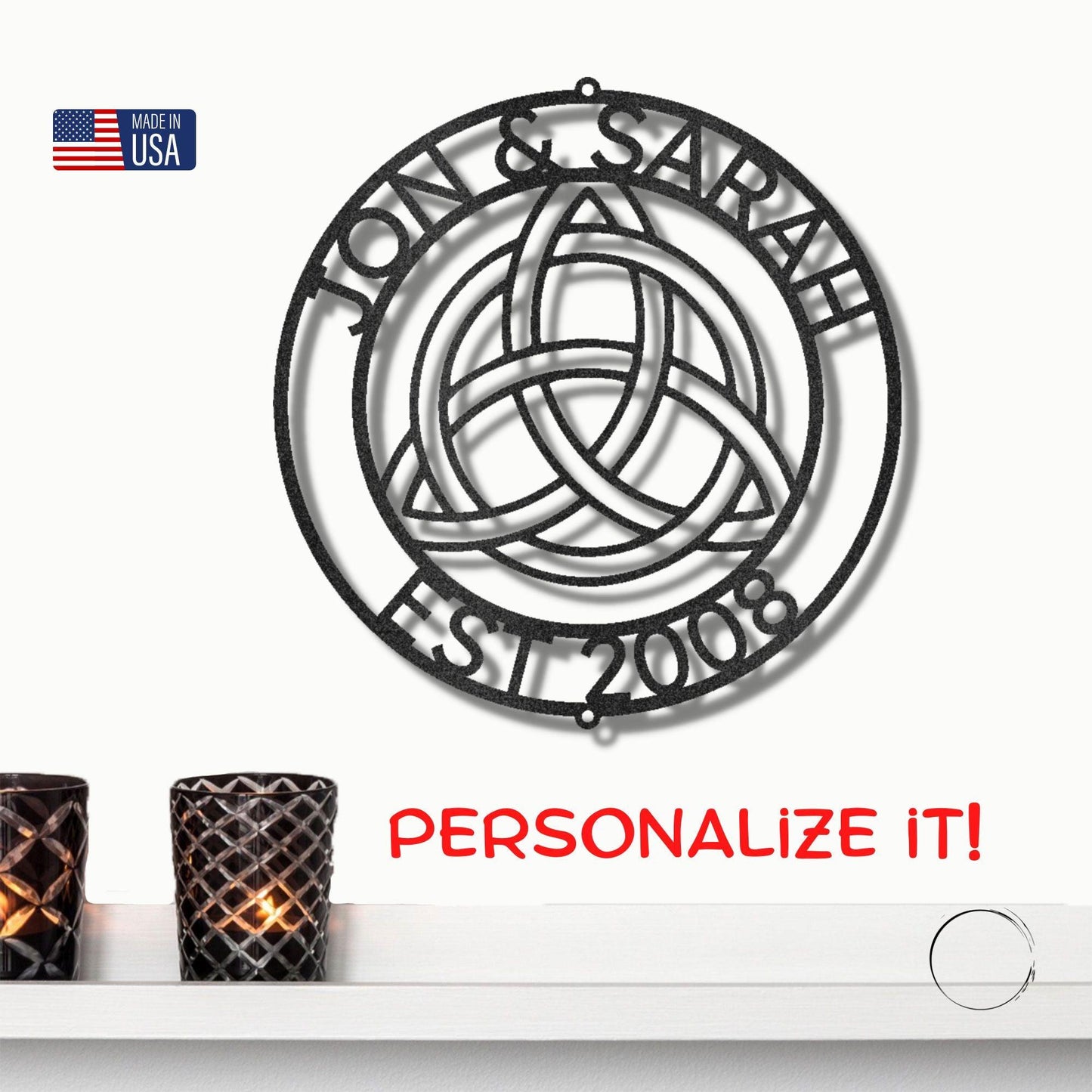 Celtic Knot Ring Monogram Personalized Name Indoor Outdoor Steel Wall Sign Metal Art
