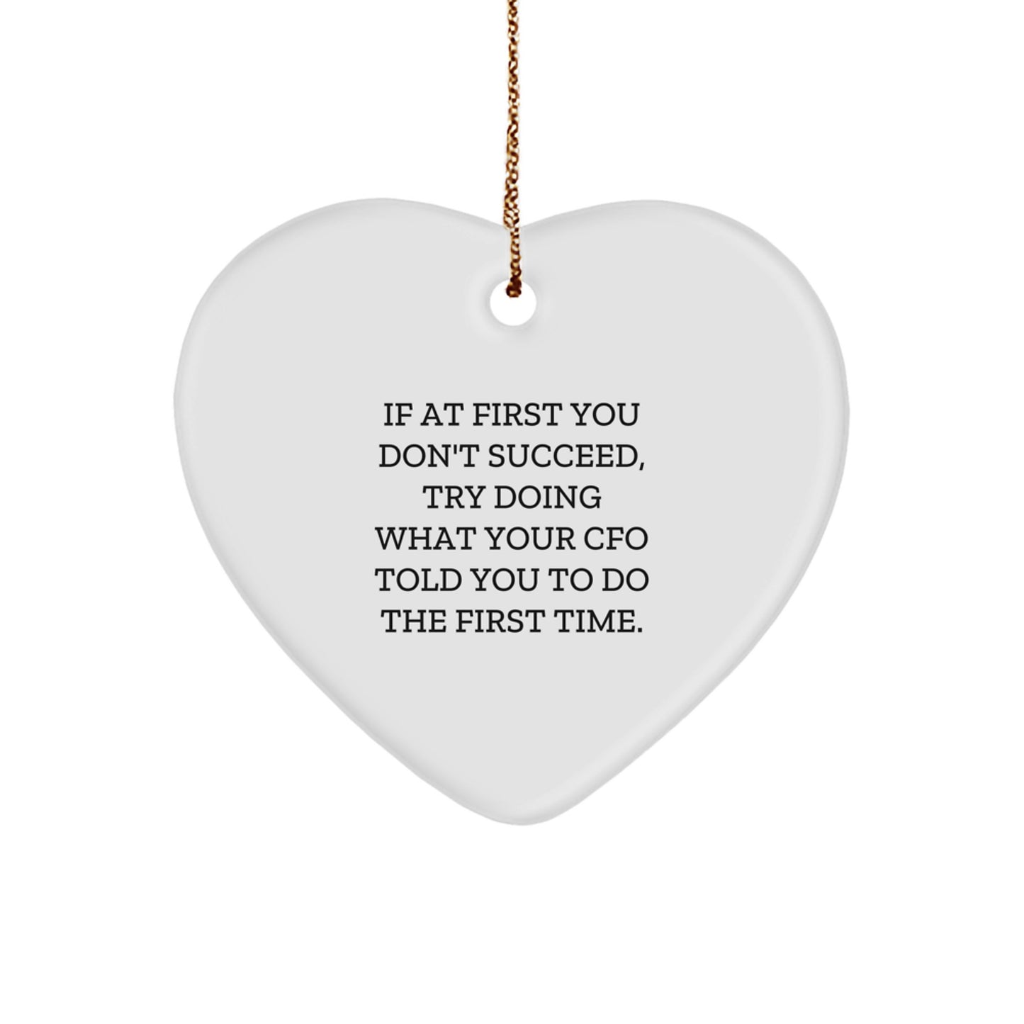 CFO Gifts from Friends, Funny Heart Ornament, 'If At First You Don't Succeed, Try Doing What Your Cfo Told You To Do The First Time.' on Christmas