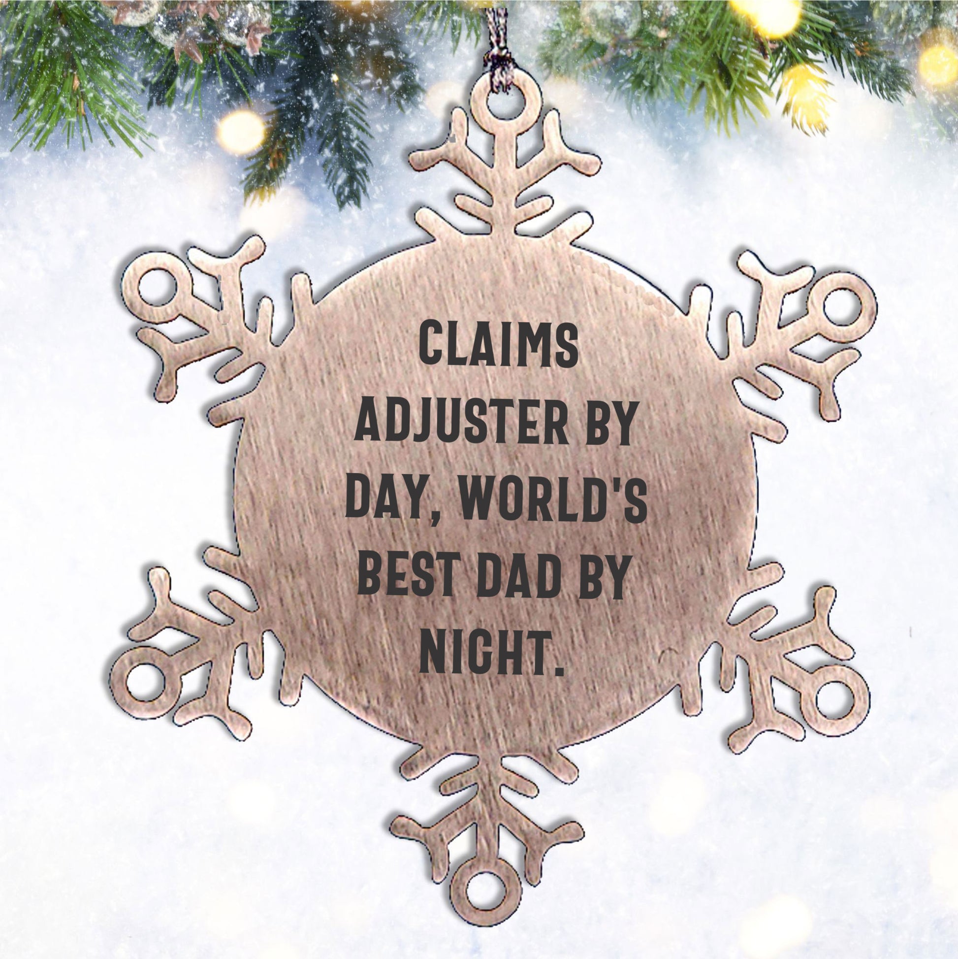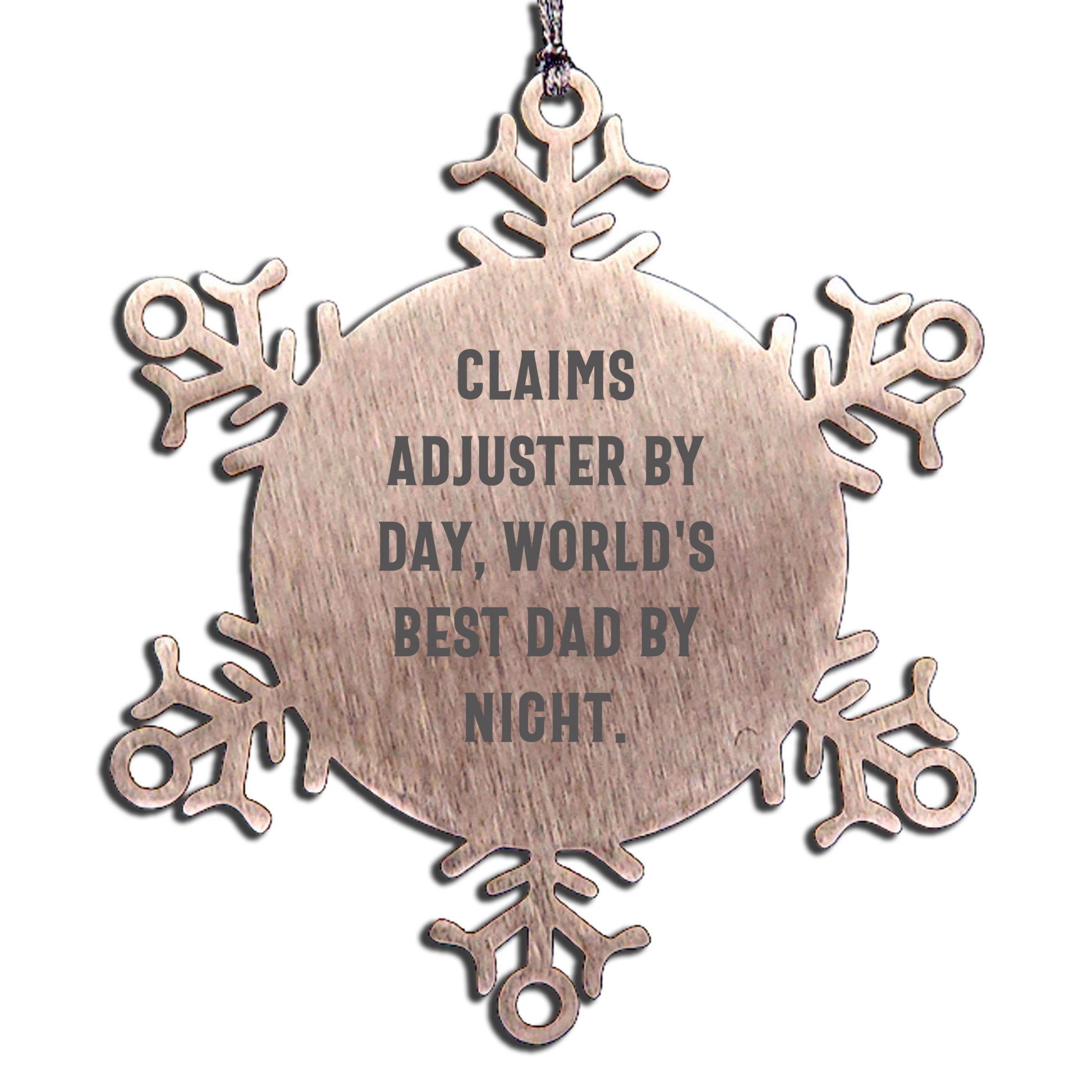 Claims Adjuster Humor Snowflake Steel Christmas Ornament, Funny Quote 'Claims Adjuster By Day, World's Best Dad By Night.'