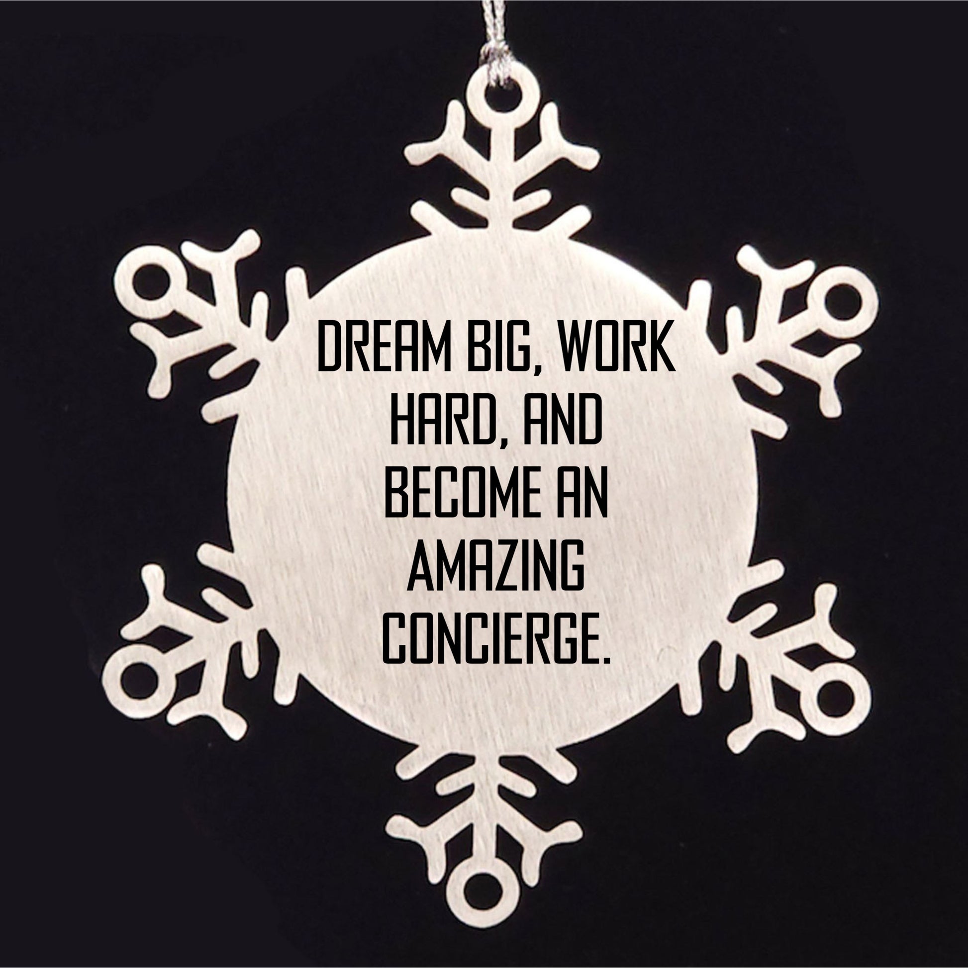 Concierge Gifts from Friends and Family, 'Dream Big, Work Hard, And Become An Amazing Concierge.' Snowflake Ornament, Shatterproof Stainless Steel, Christmas Unique Gifts