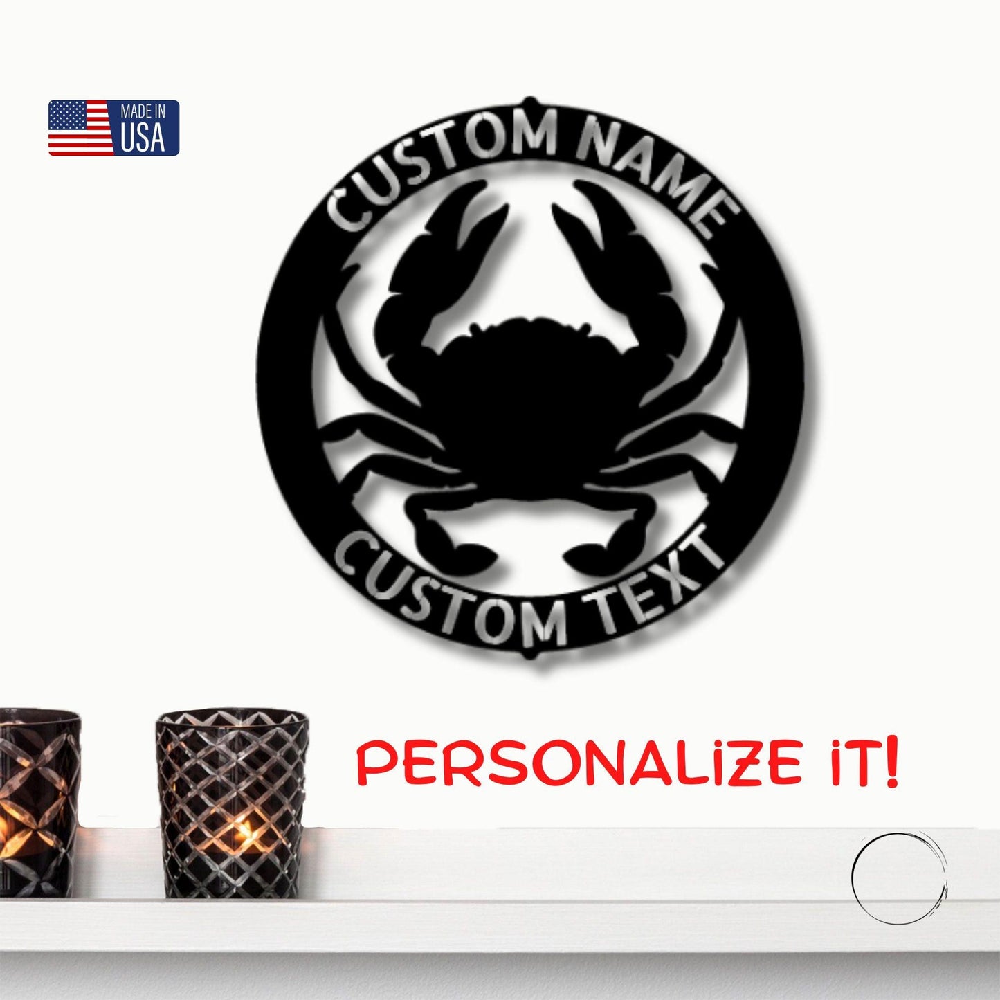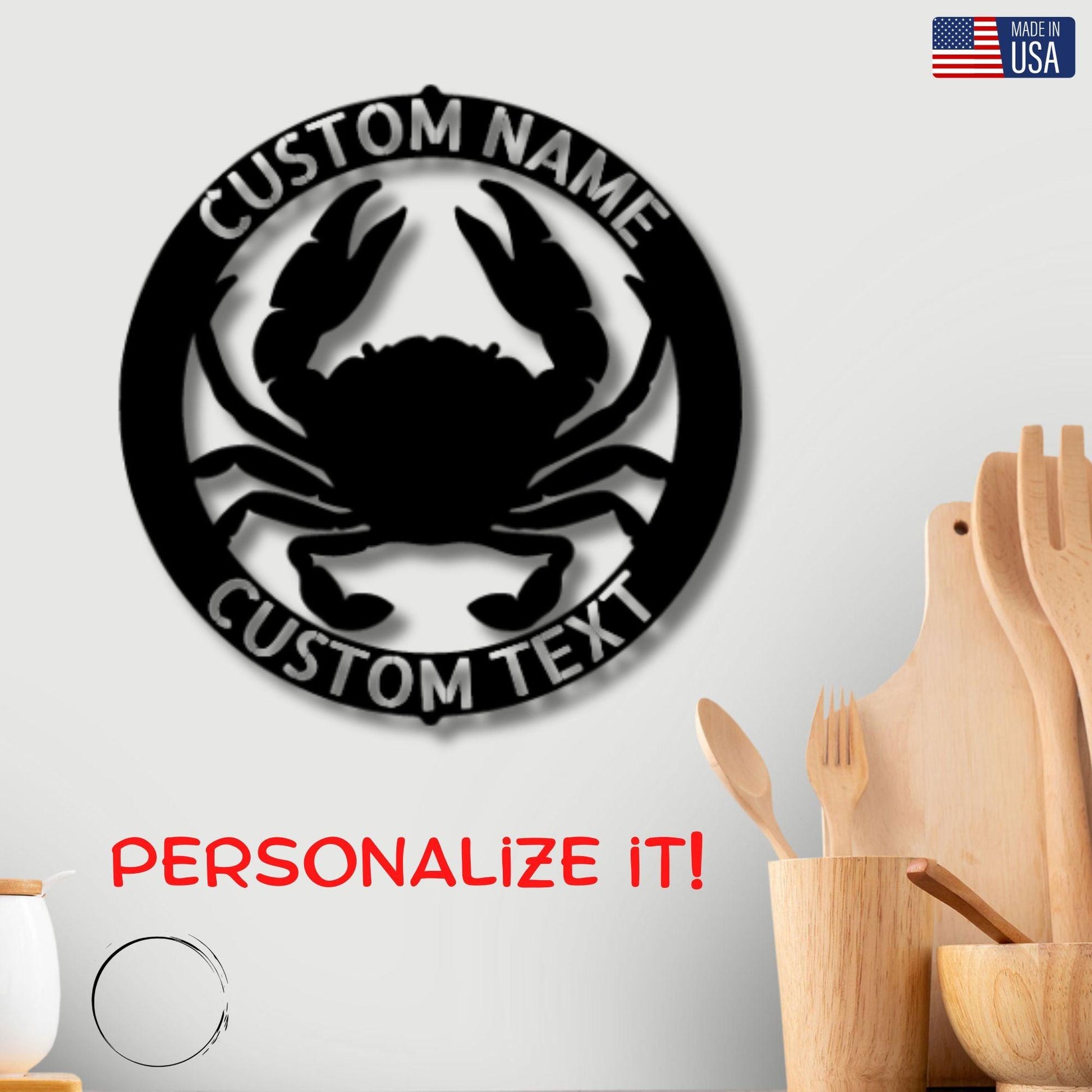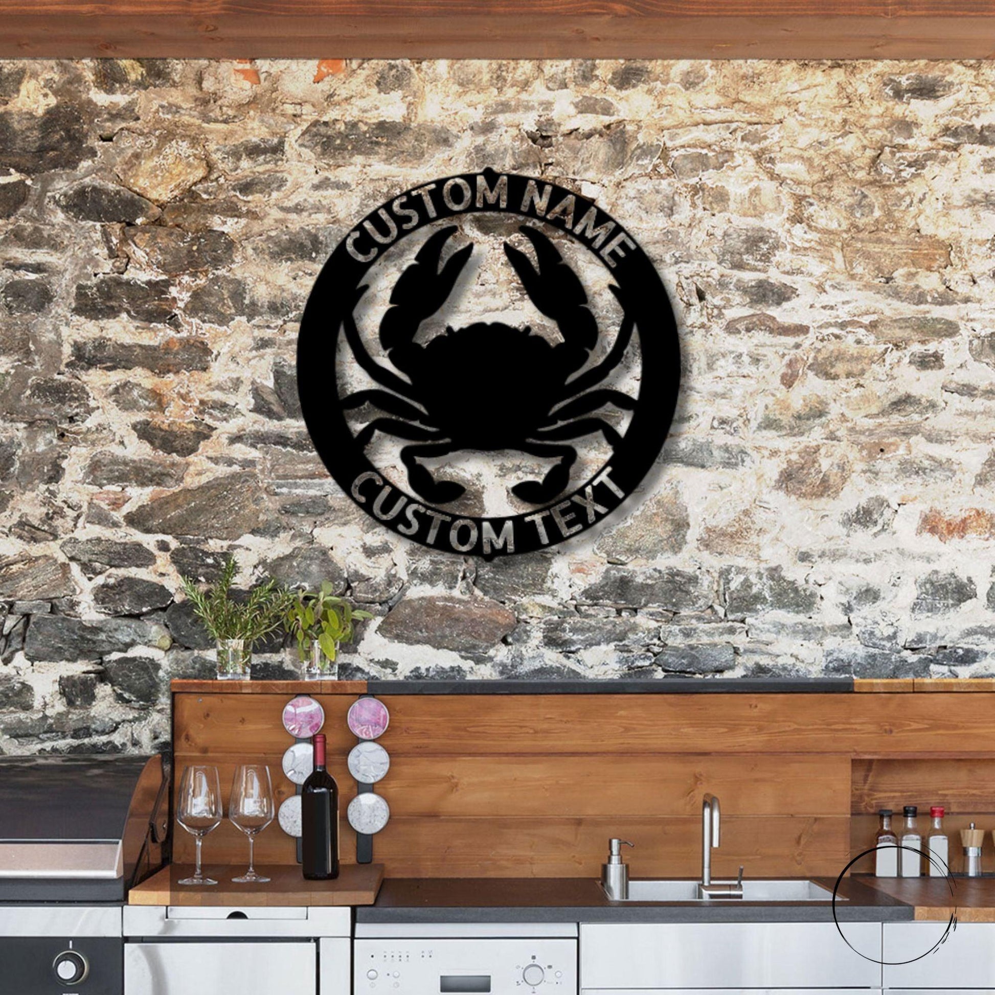 Crab Ring Monogram Personalized Steel Wall Sign Art