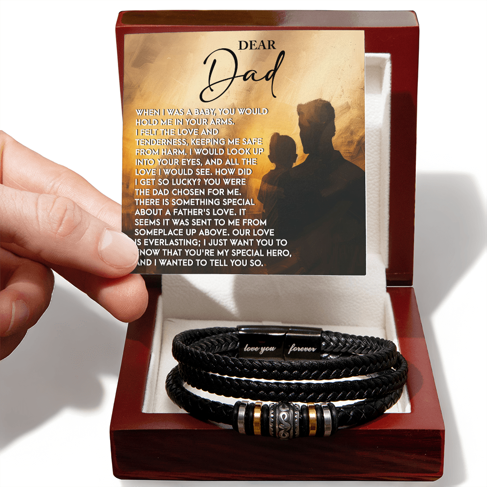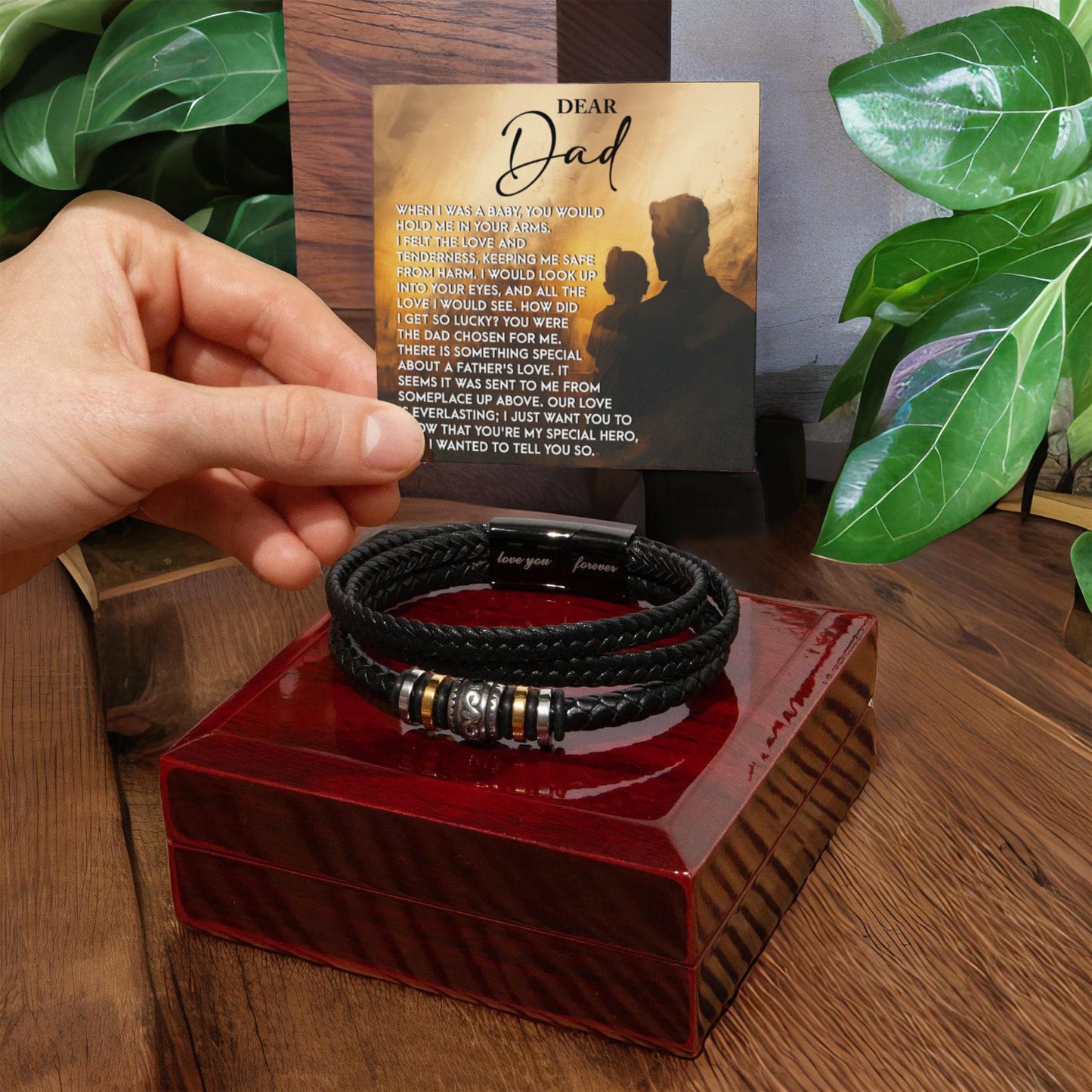 Dad Father's Day Gift - Men's “Love You Forever” Bracelet with “Chosen Love” Sentimental Message Card - Vegan Leather Bracelet - Heartfelt Gift for Dad from Son or Daughter