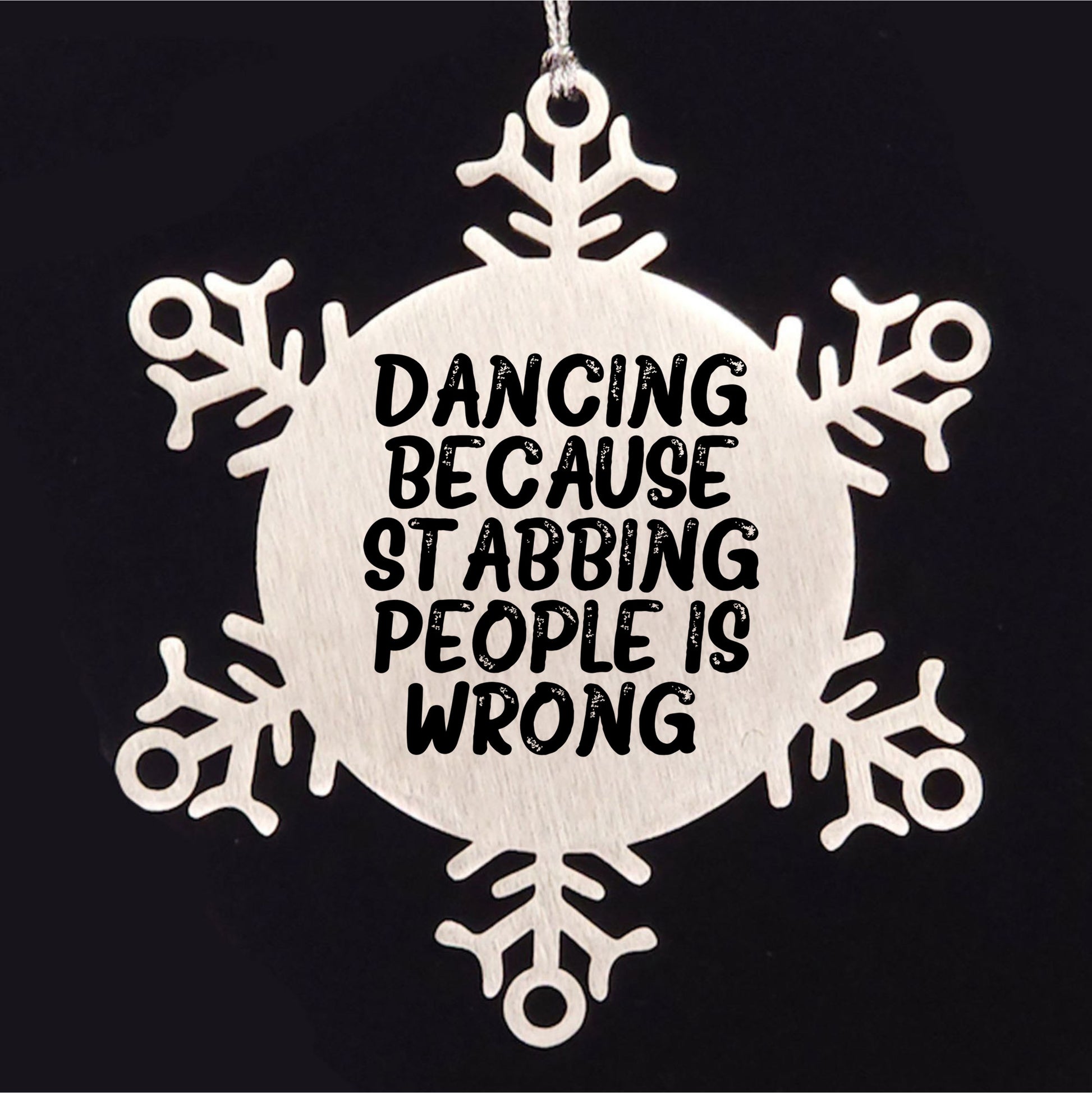 Dancing Gifts from Men to Women Friends Coworkers Family, Funny Snowflake Ornament for Christmas, 'Dancing Because Stabbing People Is Wrong.'