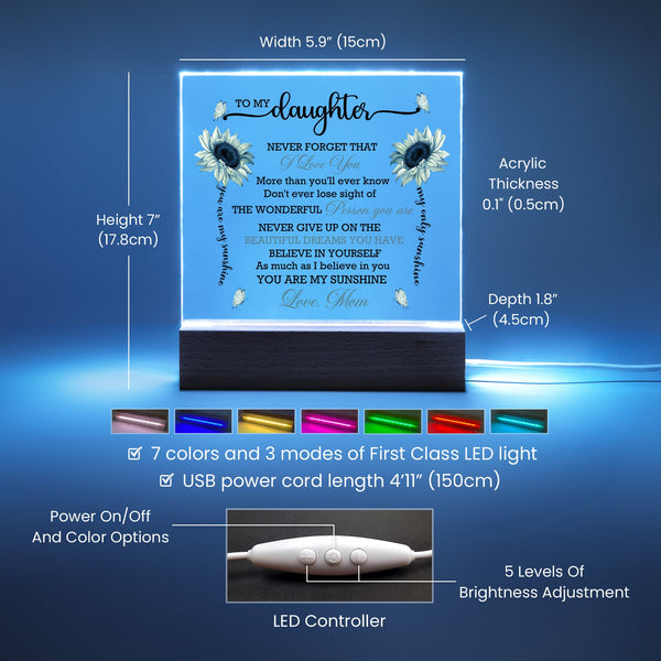 Try this beautiful plaque risk-free with our 30-day money-back guarantee. Enjoy the heartfelt message and customizable lighting, knowing your satisfaction is our top priority. Perfect for showing your daughter just how much you care, it's a gift she'll treasure forever. Experience the warmth and love it brings to any room.