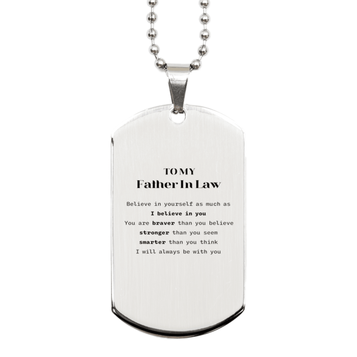 Father In Law Silver Dog Tag Gifts, To My Father In Law You are braver than you believe, stronger than you seem, Inspirational Gifts For Father In Law Engraved, Birthday, Christmas Gifts For Father In Law Men Women