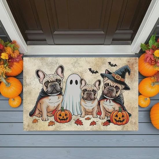 French Bulldog Halloween Doormat – Cute Spooky Dogs Welcome Mat – Funny Fall Décor for Dog Lovers
