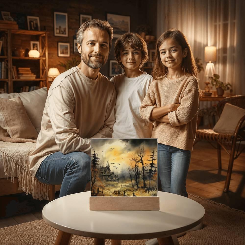 Combine modern technology and a heartfelt message with our Frightful Forest Halloween Square Acrylic Plaque!