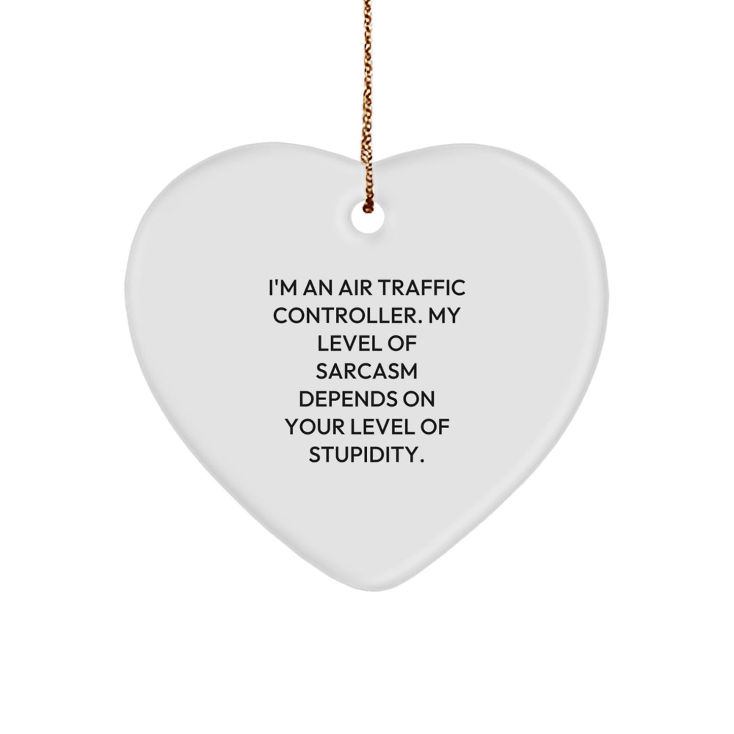 - Show your appreciation for an Air Traffic Controller's hard work and dedication with this funny Heart Ornament. Made from sturdy MDF with a high-gloss plastic finish, it's a unique and thoughtful gift that's sure to bring a smile to their face. The quote 'I'm An Air Traffic Controller. My Level Of Sarcasm Depends On Your Level Of Stupidity.' is a hilarious way to poke fun at the challenges of their job.