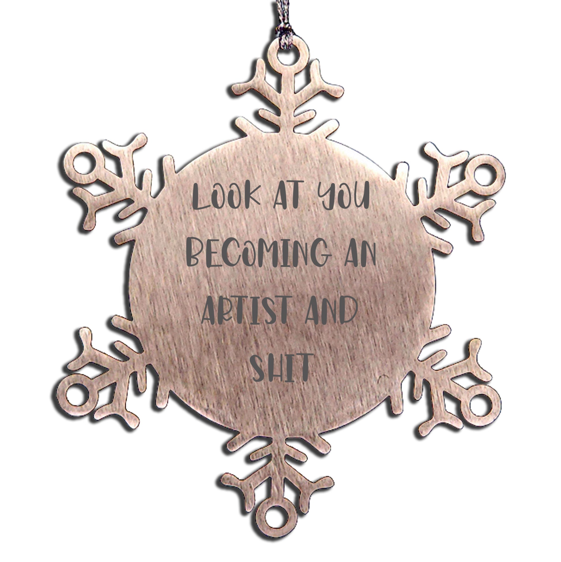 - Looking for a unique gift for your friends or family? Our Funny Artist Snowflake Ornament is the perfect choice. With its funny quote and stylish design, this ornament is sure to bring a smile to their face. Whether you're shopping for Christmas gifts or looking for a special addition to your Artist studio, we've got you covered.