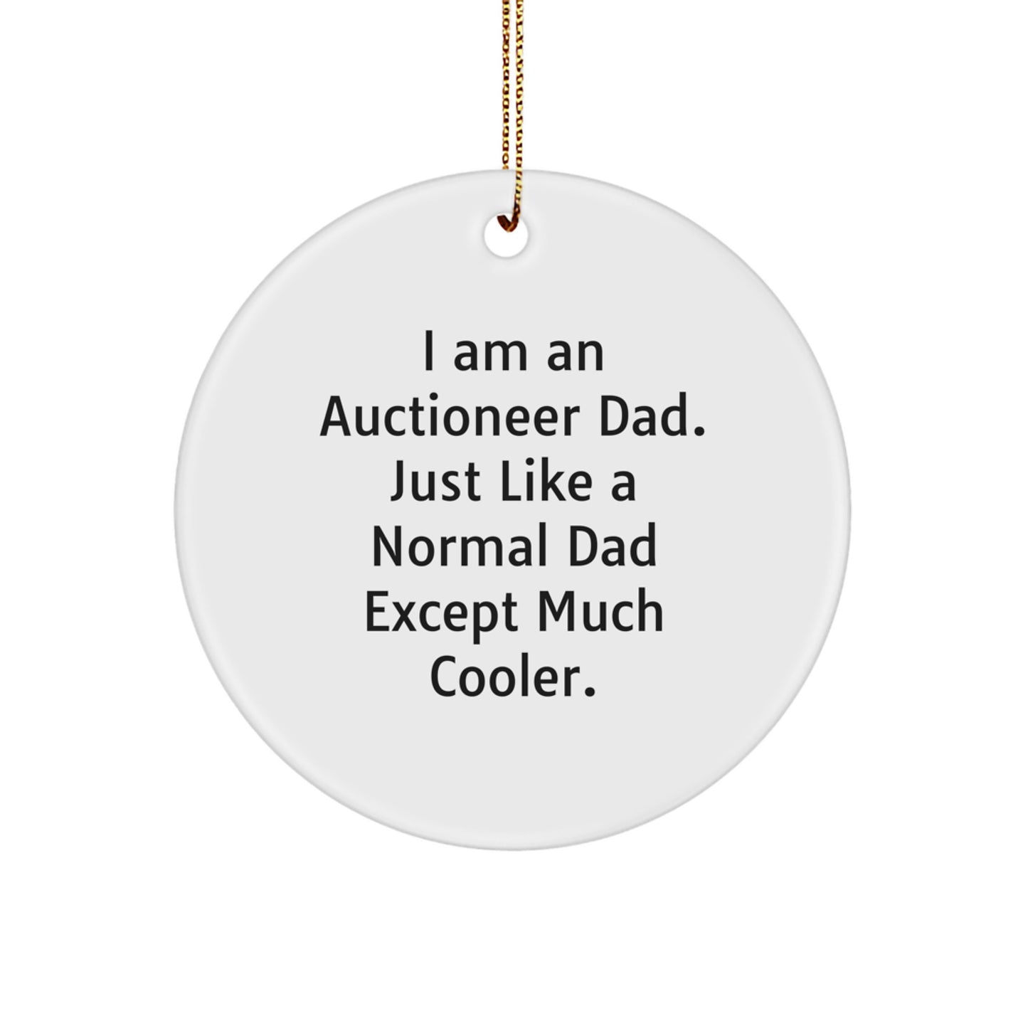 Funny Auctioneer Dad Gifts from Men to Friends and Family Christmas Unique Circle Ornament - 'I Am An Auctioneer Dad. Just Like A Normal Dad Except Much Cooler.'