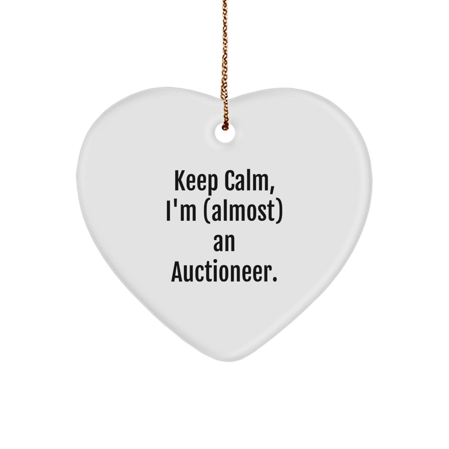 Funny Auctioneer Gifts from Friends, Keep Calm, I'm (almost) An Auctioneer, Heart Ornament for Men, Women, or Coworkers at Christmas Time