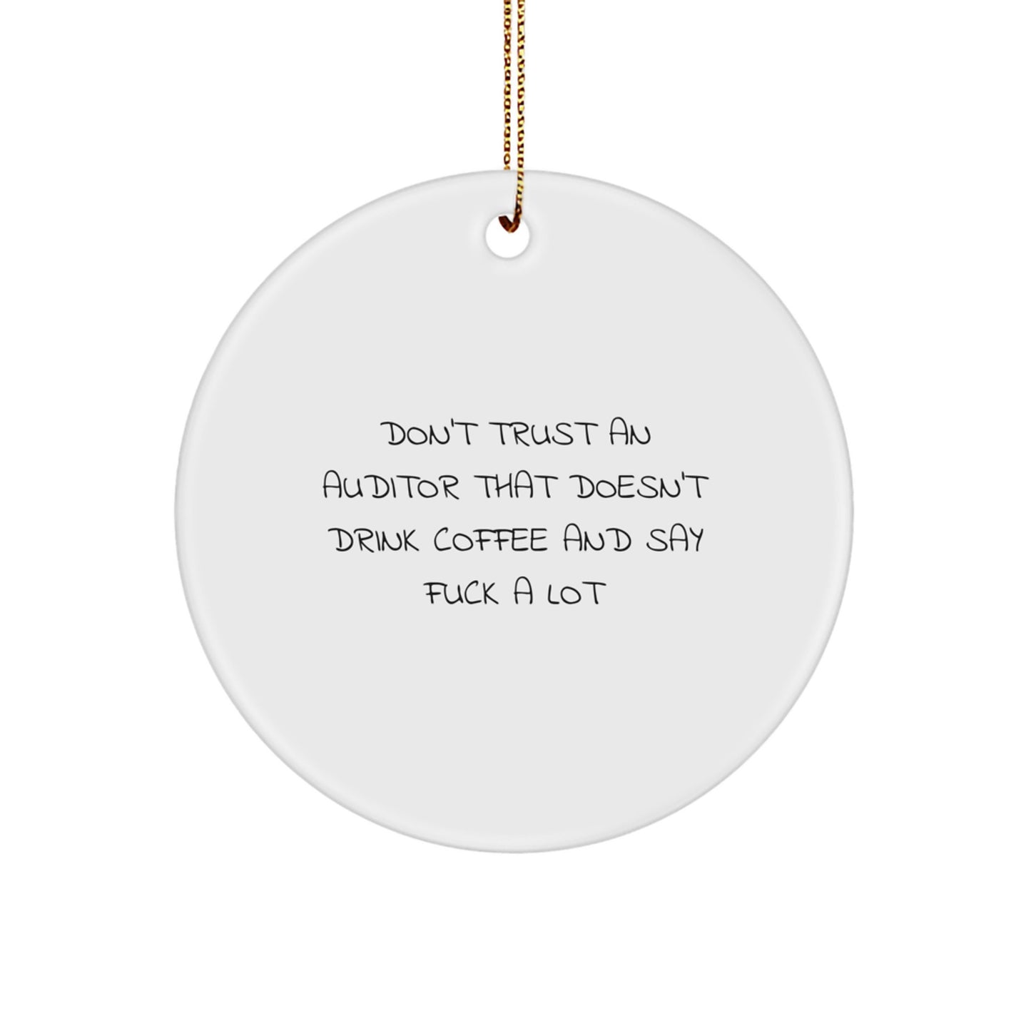 Funny Auditor Gifts for Men, Gifts from Friends to Christmas Unique Gifts, Circle Ornament with Quote 'Don't Trust An Auditor That Doesn't Drink Coffee And Say F--k A Lot'