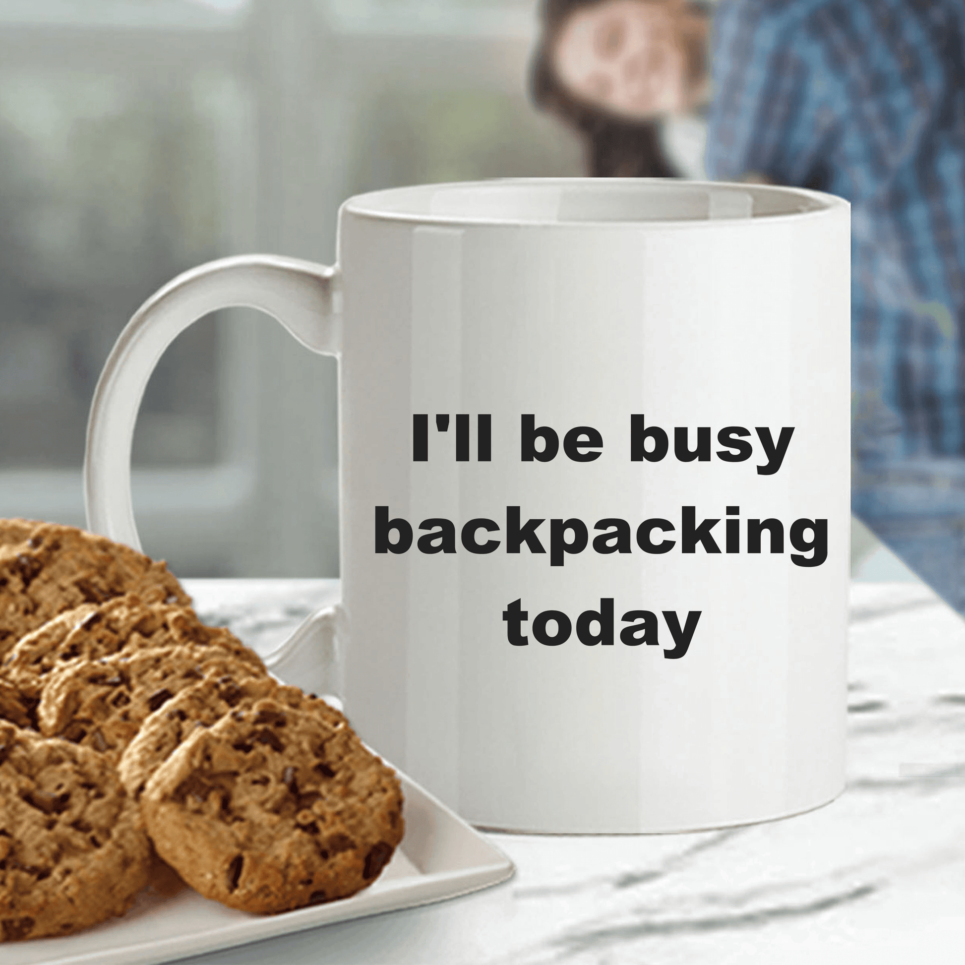 Funny Backpacking ceramic mugs come in 11 and 15 ounce sizes, which are great for coffee, tea, hot chocolate, milk, or any other beverage. The two-tone mugs are available in black, red, navy, and pink. The design is also available in the 14-oz travel mug and the 20-oz and 30-oz Polar laser-etched color tumblers. Just message me if you want a different product.