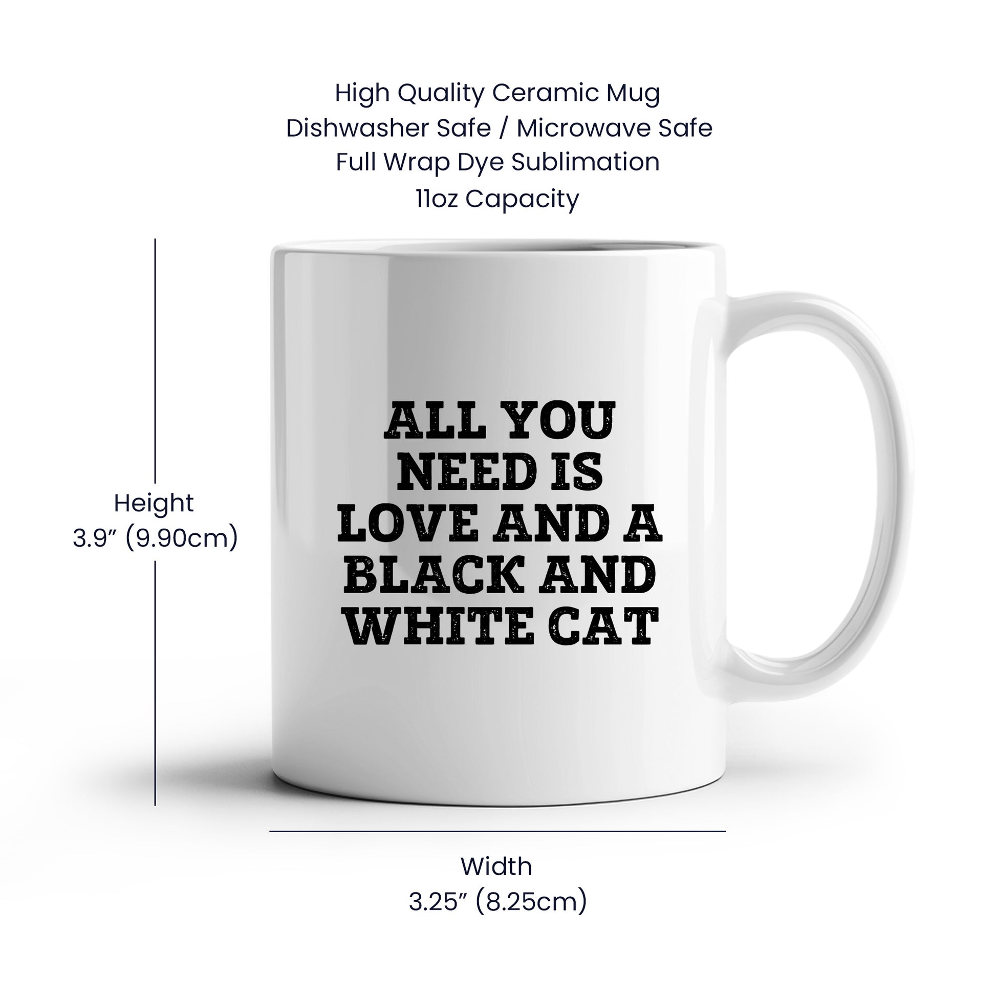 Funny Black and White Cat Coffee Mugs for Graduation Gifts from Friends and Family - 'All You Need Is Love And A Black And White Cat' Quote
