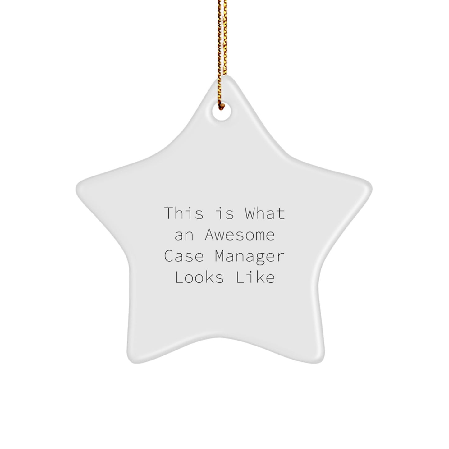 Funny Case Manager Gifts from Friends, 'This Is What An Awesome Case Manager Looks Like', Star Ornament for Case Manager, Unique Christmas Unique Gifts for Family, Coworkers