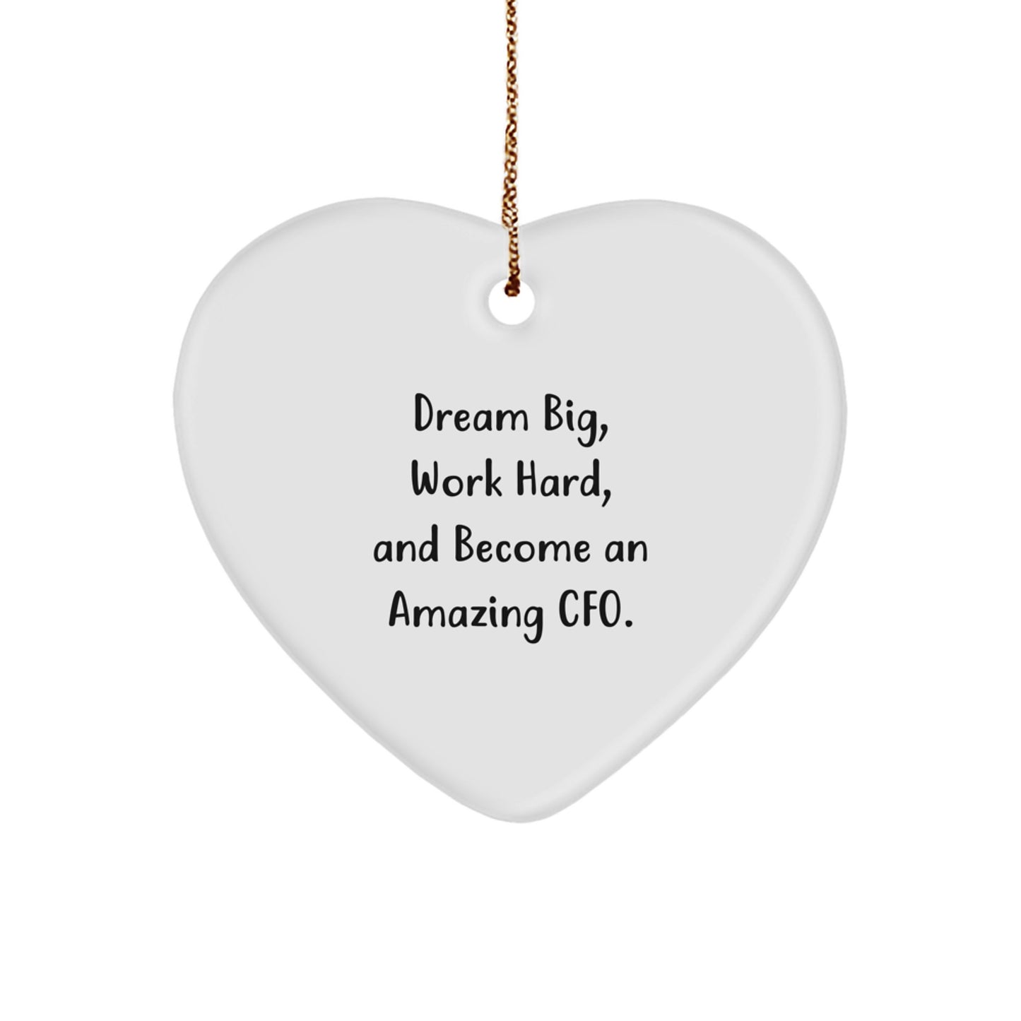 - Our Funny CFO Gifts - Heart Ornament is a unique and personalized gift for any CFO. It's vibrantly printed from edge-to-edge via Sublimation, ensuring bright, vivid colors that will last for years to come. The quote 'Dream Big, Work Hard, And Become An Amazing Cfo.' is a great reminder for anyone who wants to succeed in their career, and makes a great gift for friends or family members who work in finance.