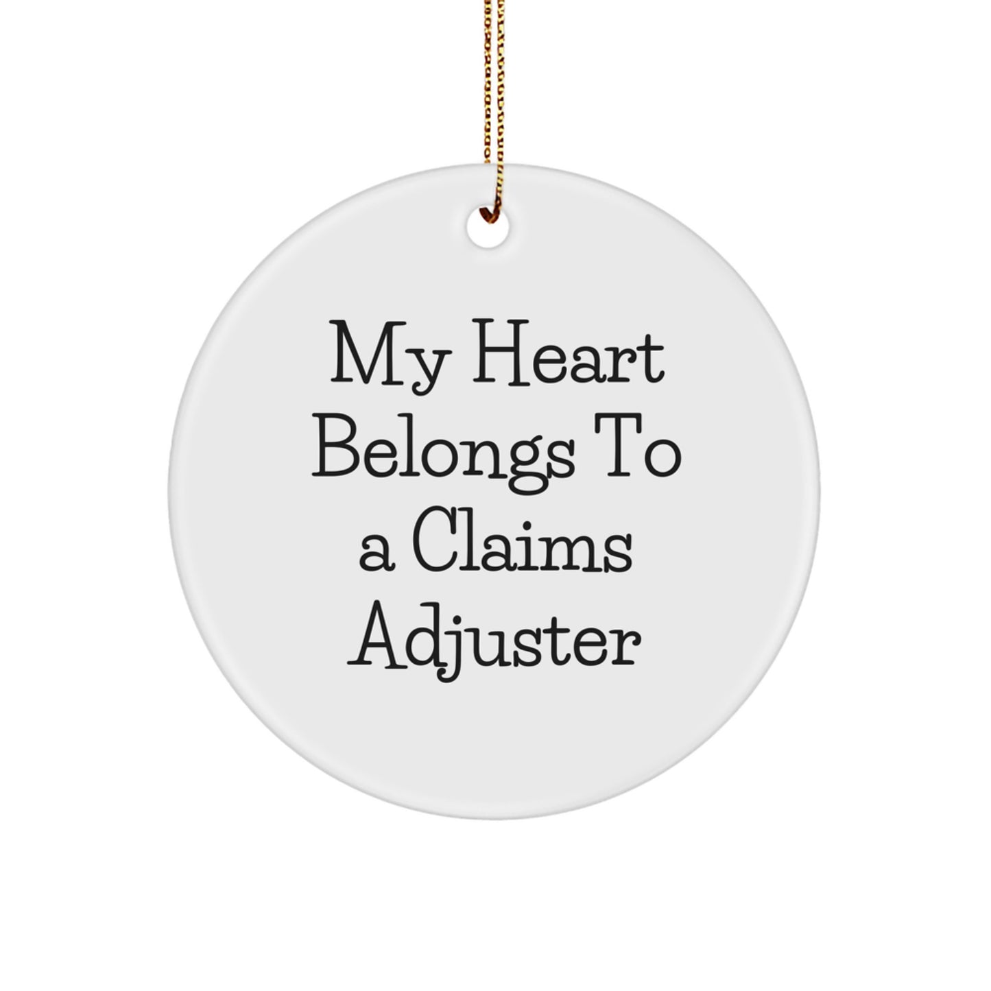 Funny Claims Adjuster Gifts from Friends and Family - 'My Heart Belongs To A Claims Adjuster' Circle Ornament for Christmas