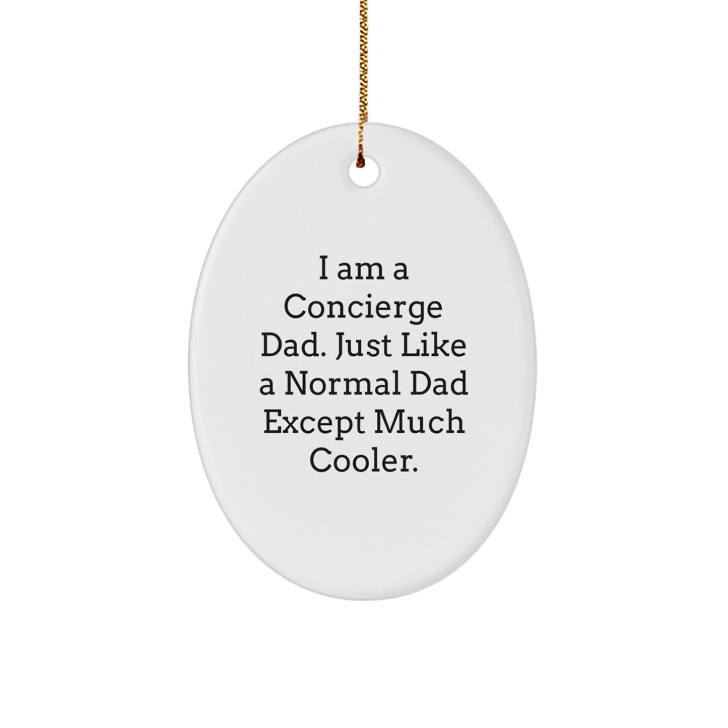 - Concierge dads deserve a special gift that reflects their unique personality. This I Am A Concierge Dad Oval Ornament is a great way to show your dad how much you care. The funny quote adds a touch of humor to this thoughtful gift.