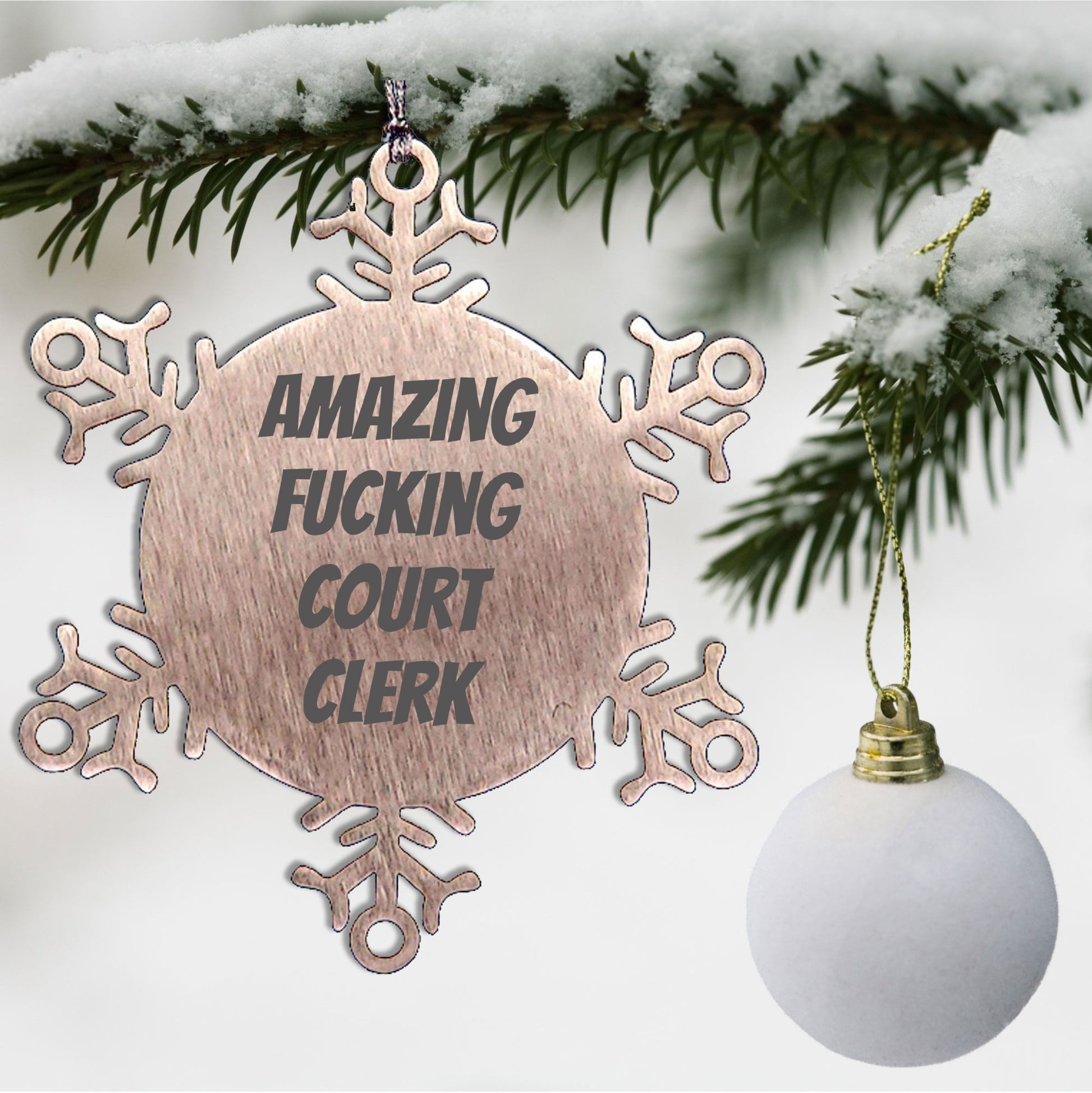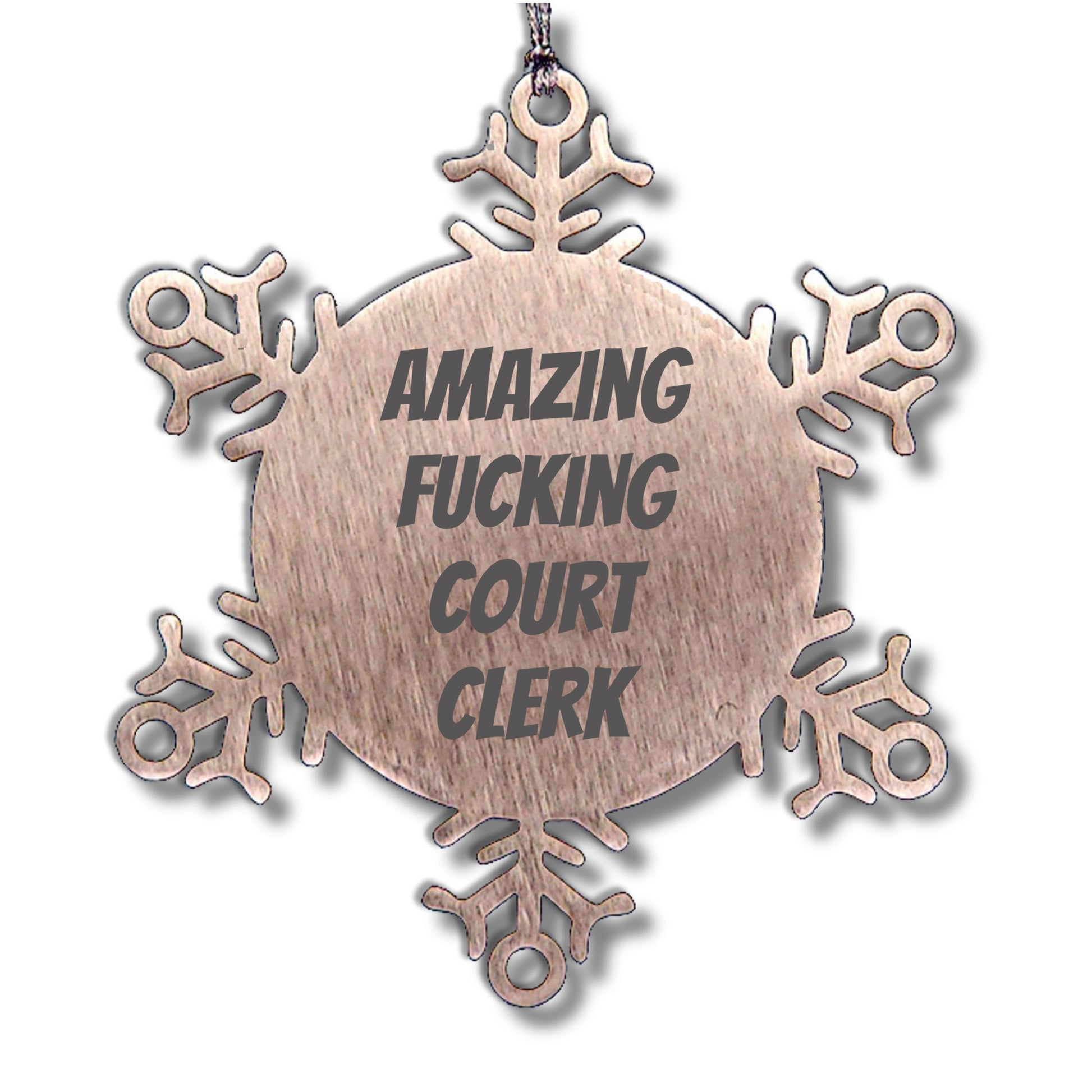 Funny Court Clerk Snowflake Steel Tree Ornament - 'Amazing F--king Court Clerk' Christmas Unique Gifts