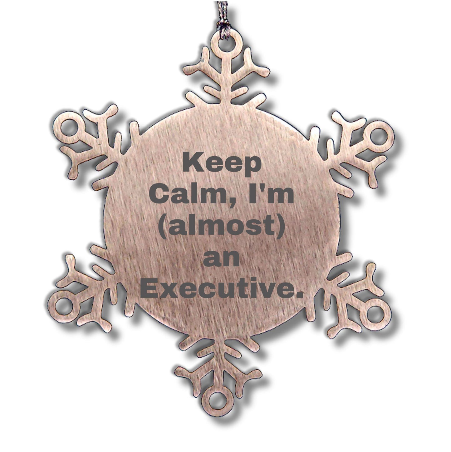 Funny Executive Gifts from Friends, 'Keep Calm, I'm (almost) An Executive.' Snowflake Ornament for Christmas