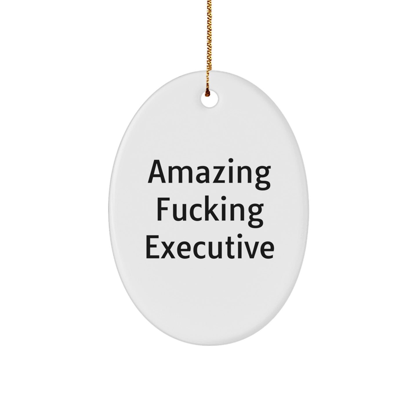 - Our Funny Executive Oval Ornament is designed with a sturdy MDF construction and high-gloss plastic finish, ensuring that it will withstand the wear and tear of daily use. Its unique design and humorous quote will make it a memorable and thoughtful gift that an Executive will cherish for years to come. Whether you're shopping for a Christmas gift or just looking for a way to brighten up someone's day, our Funny Executive Oval Ornament is the perfect choice.