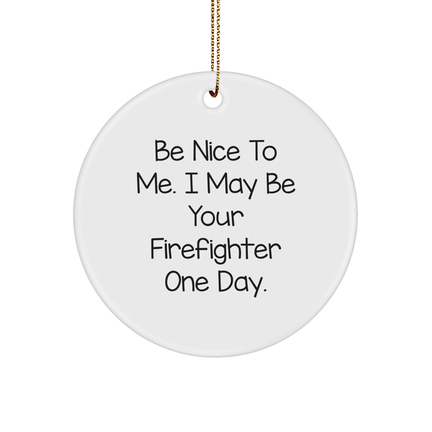 - Add a touch of heroism to your home with our Firefighter Circle Ornament, a beautiful reminder of 'Be Nice To Me. I May Be Your Firefighter One Day.' Perfect for firefighters and their families, this ornament is a heartfelt way to show appreciation for their bravery.