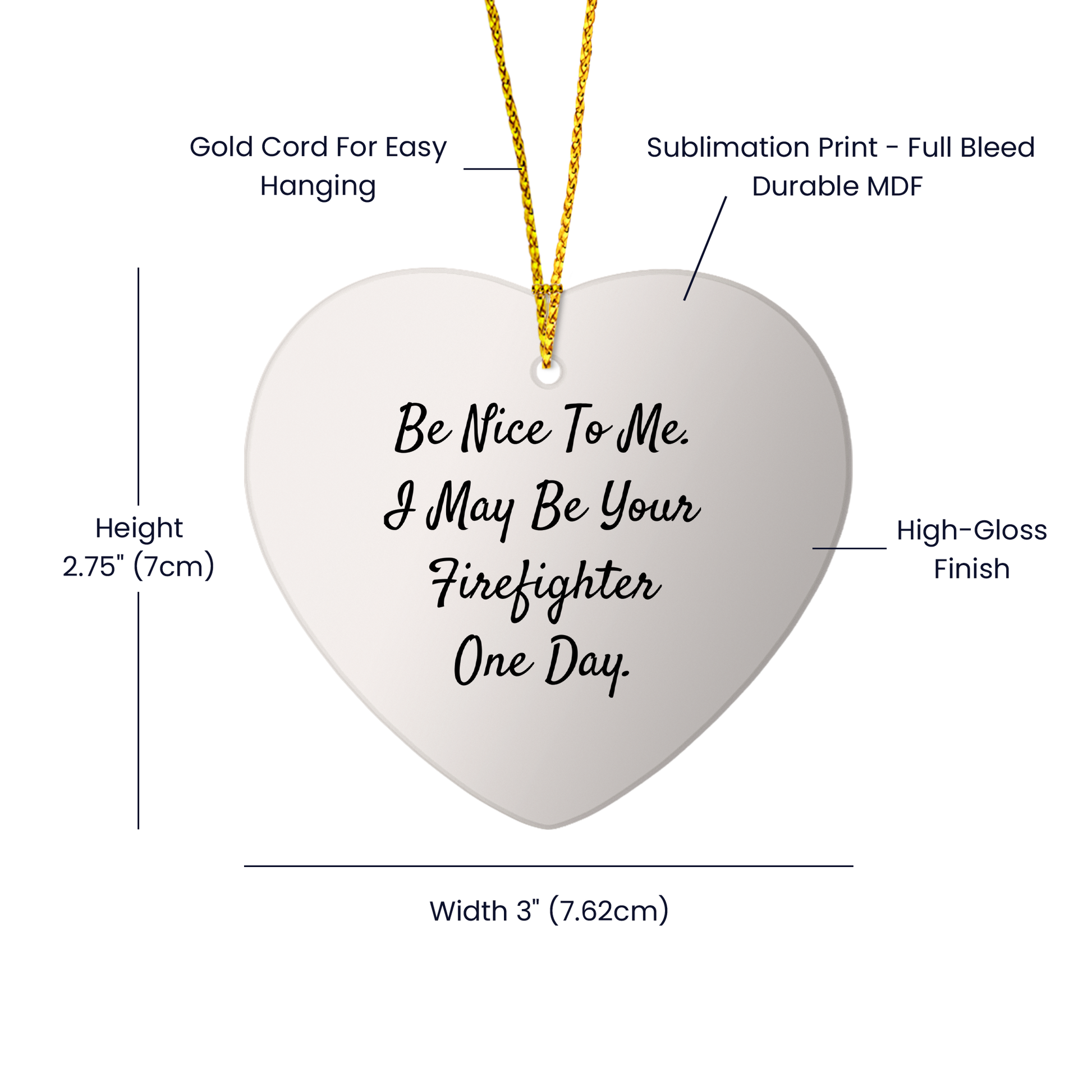 Funny Firefighter Heart Ornament Gifts from Friends - Be Nice To Me I May Be Your Firefighter One Day