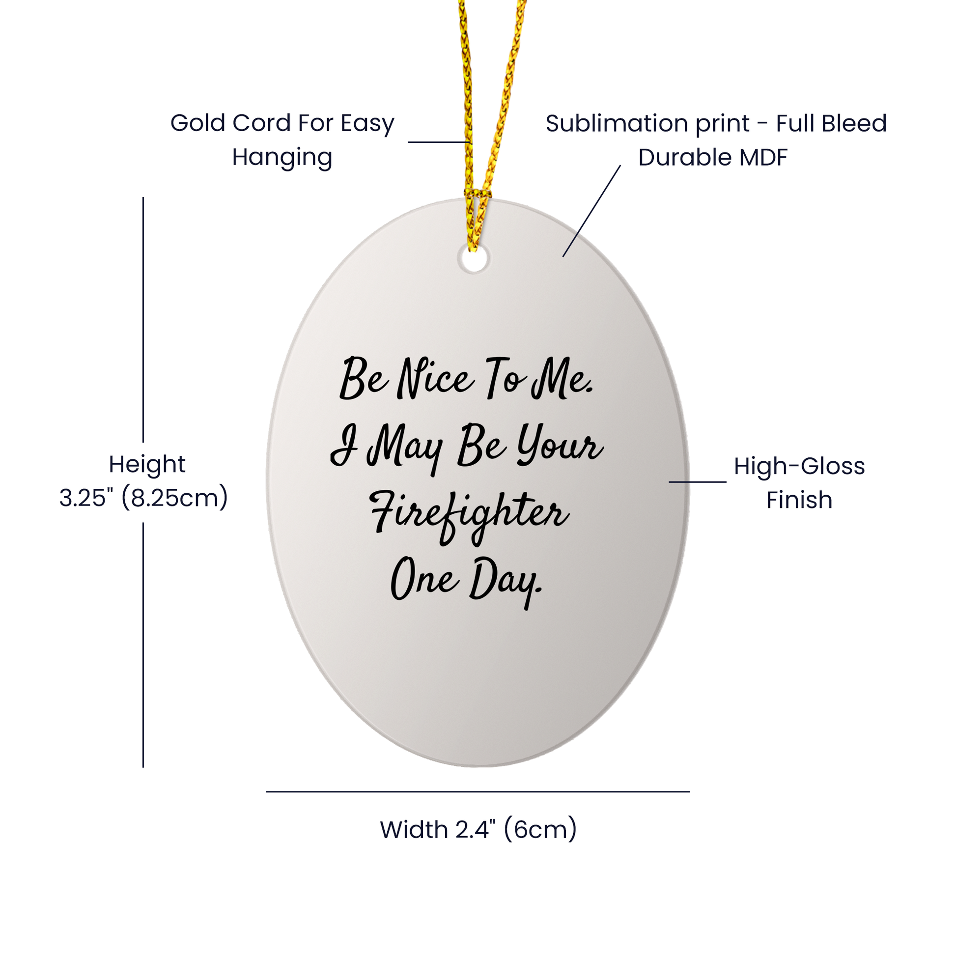 Funny Firefighter Oval Ornament Gifts for Firefighter - Be Nice To Me. I May Be Your Firefighter One Day. Christmas Unique Gifts