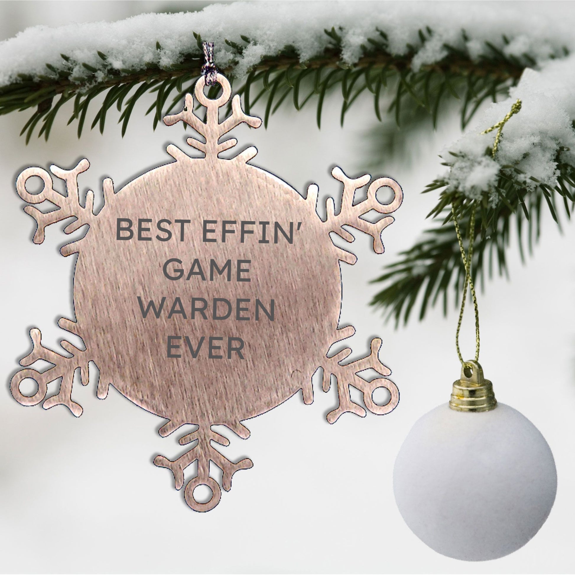 Funny Game Warden Gifts from Men - Best Effin' Game Warden Ever Snowflake Ornament for Christmas Unique Gifts