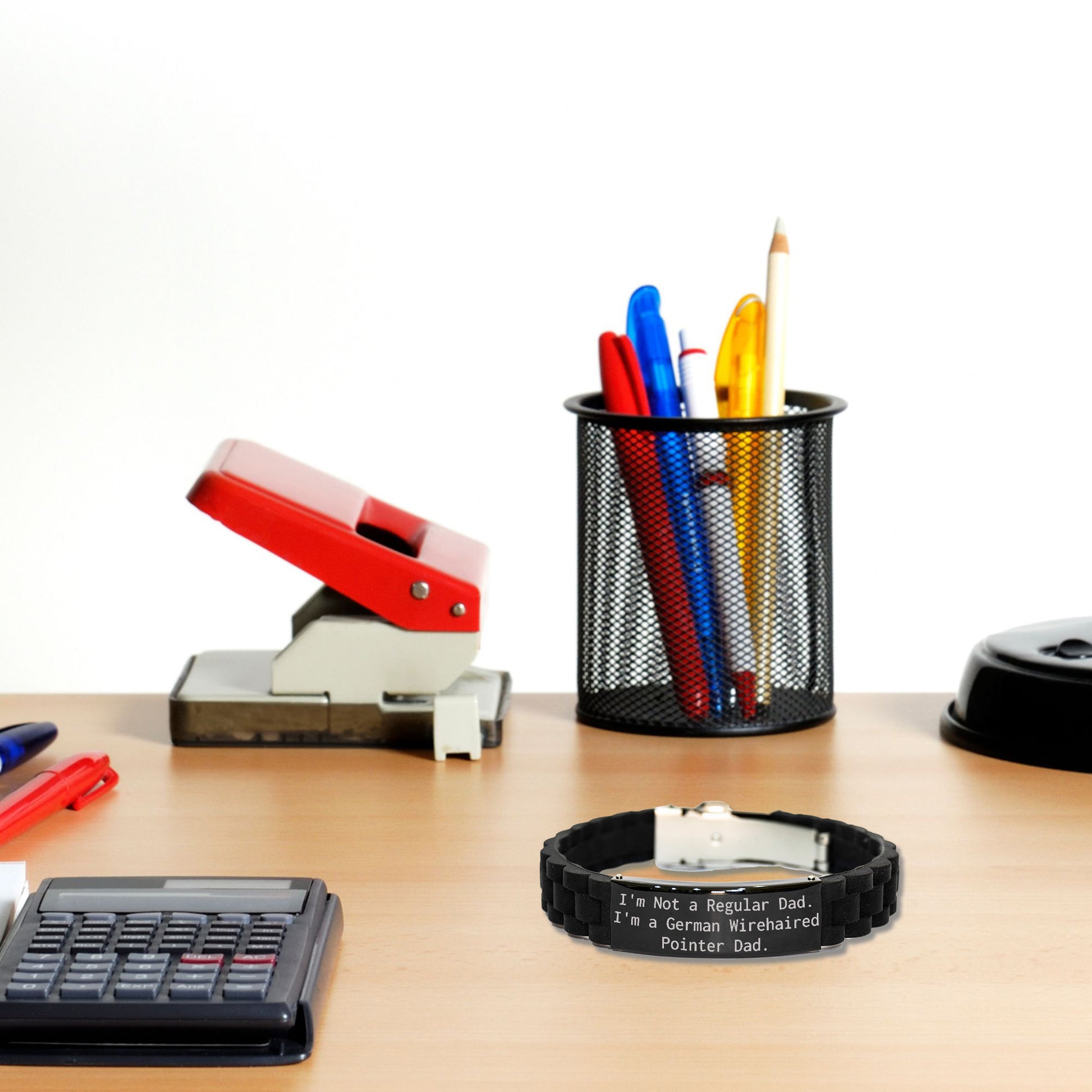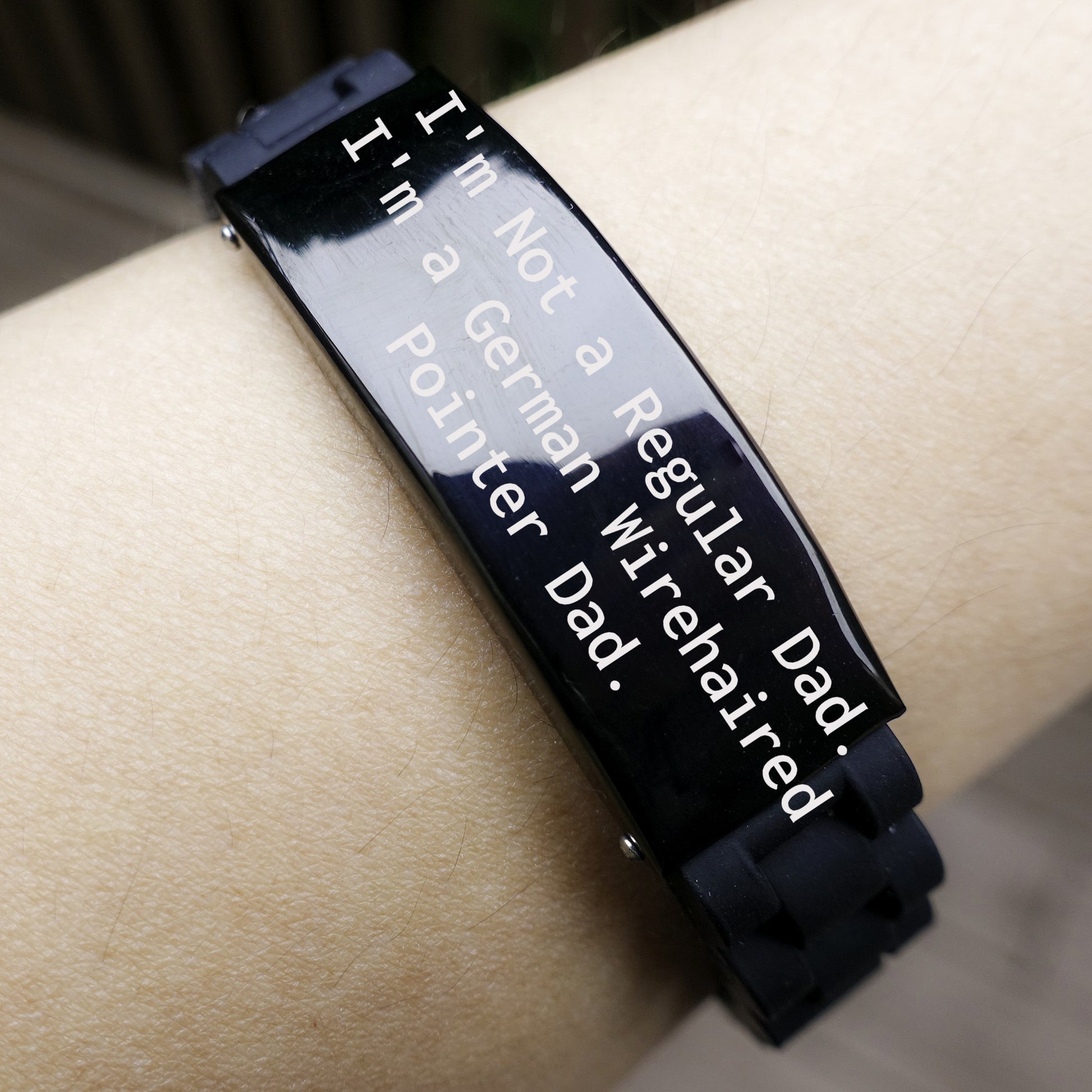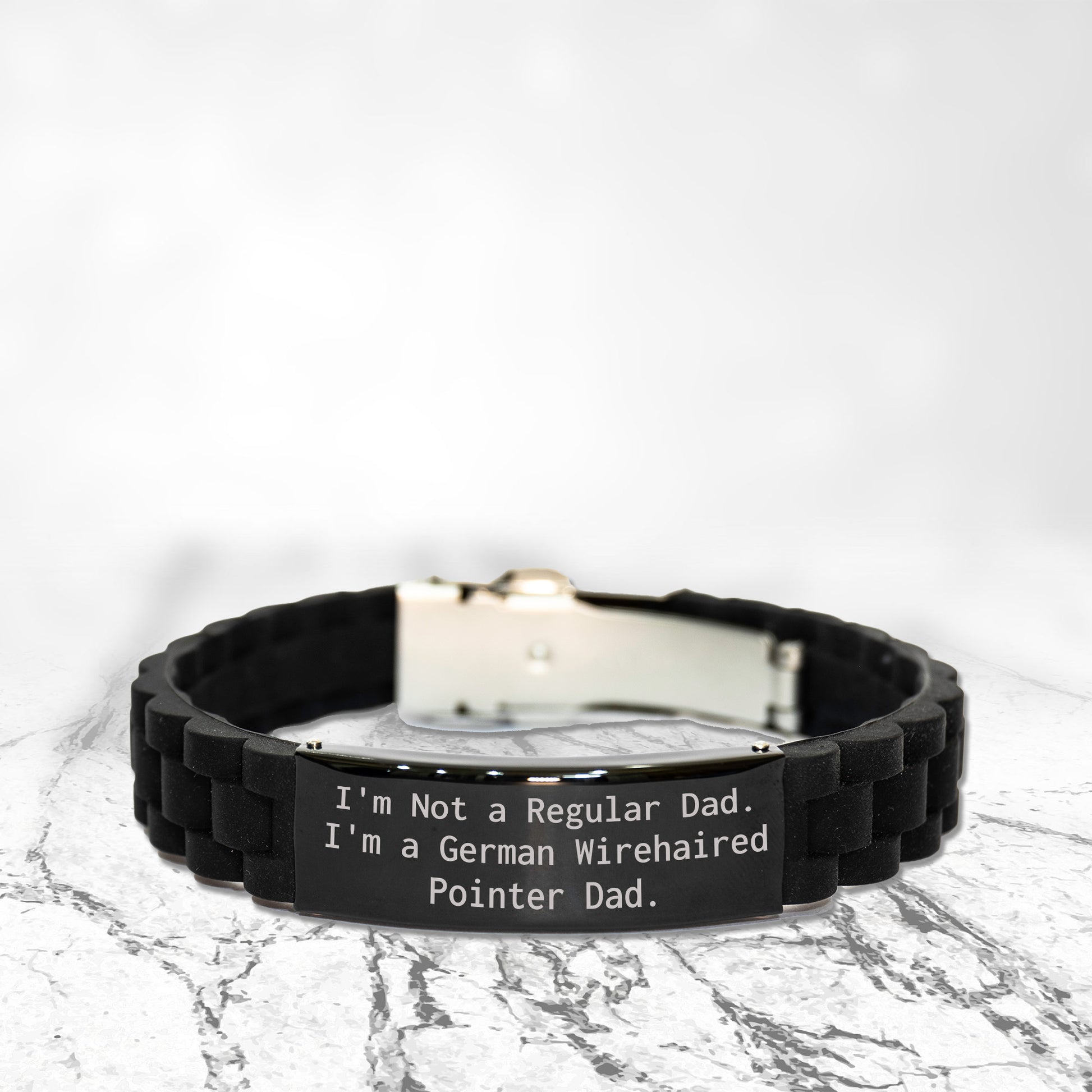 If you’re a proud German Wirehaired Pointer enthusiast or looking for a unique gift for a dog-loving dad, this Christmas is the perfect time to surprise him with something special. The Glide Lock Clasp Bracelet, made from high-quality silver, black stainless steel, and silicone, is durable, stylish, and adjustable to fit any wrist size. Packaged elegantly, it’s a thoughtful accessory any German Wirehaired Pointer dad will cherish. Featuring the quote “I’m Not A Regular Dad. I’m A German Wirehaired Pointer Dad.”, it captures the joy of the bond between man and dog. Perfect for Christmas, birthdays, or just because, this bracelet is a fun and heartfelt way to celebrate his love for his loyal companion.