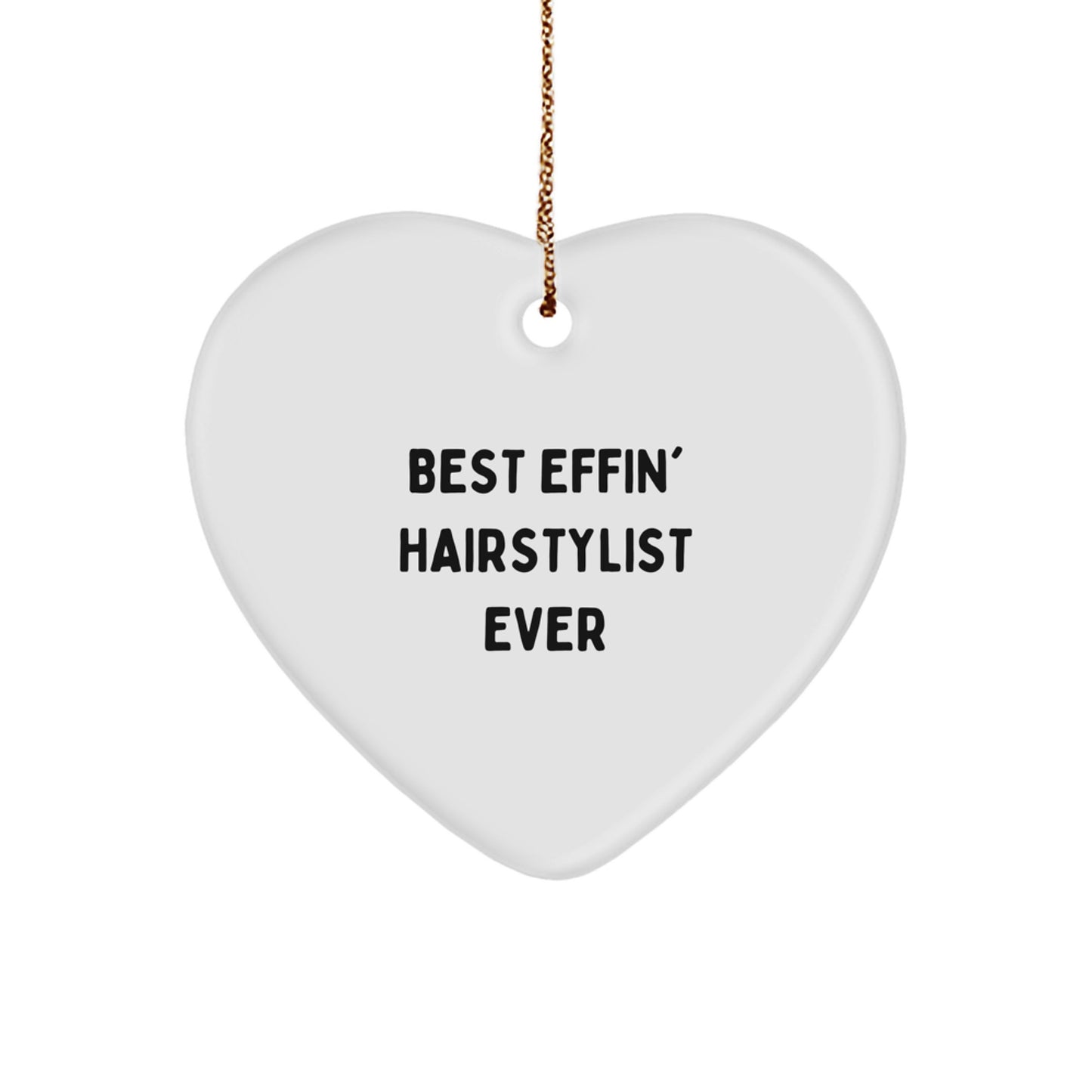 Funny Hairstylist Heart Ornament Gifts from Friends, Christmas Unique Gifts for Hairstylist, Best Effin' Hairstylist Ever Heart Shaped Decoration