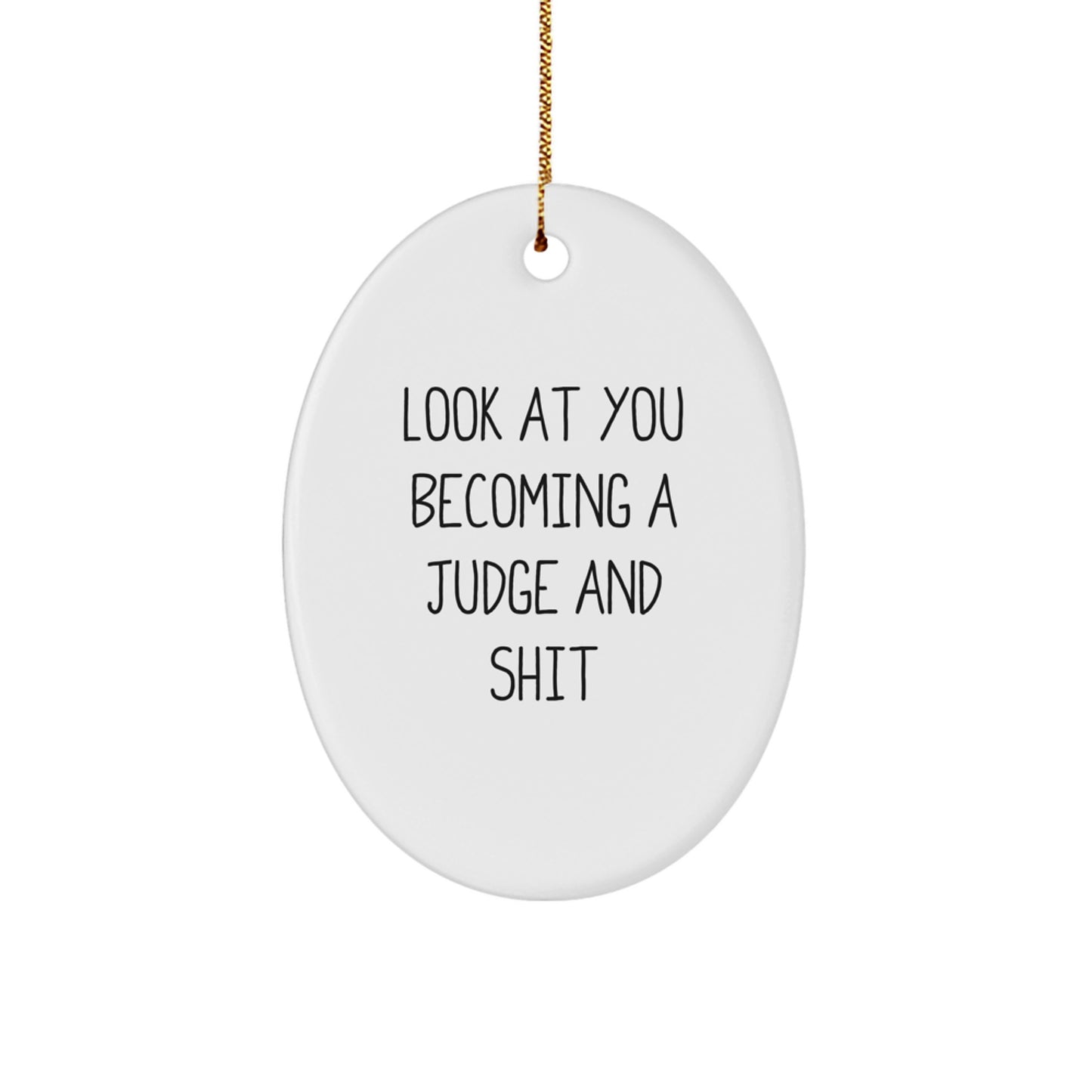 Funny Judge Oval Ornament, Gifts from Friends to Judge, Christmas Unique Gifts for Her, Him, or Judge, Look At You Becoming A Judge And Shit