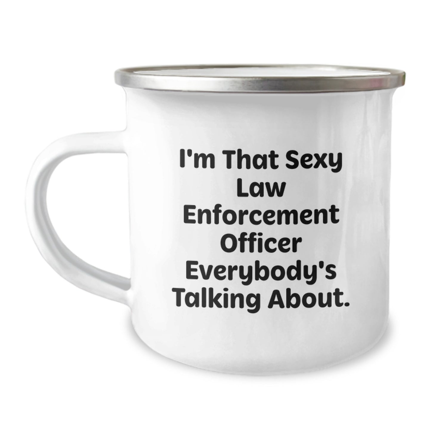 - Perfect gift for the Law Enforcement Officer in your life this Christmas, featuring a humorous 'I'm That Sexy Law Enforcement Officer Everybody's Talking About' quote on a sturdy stainless steel mug.