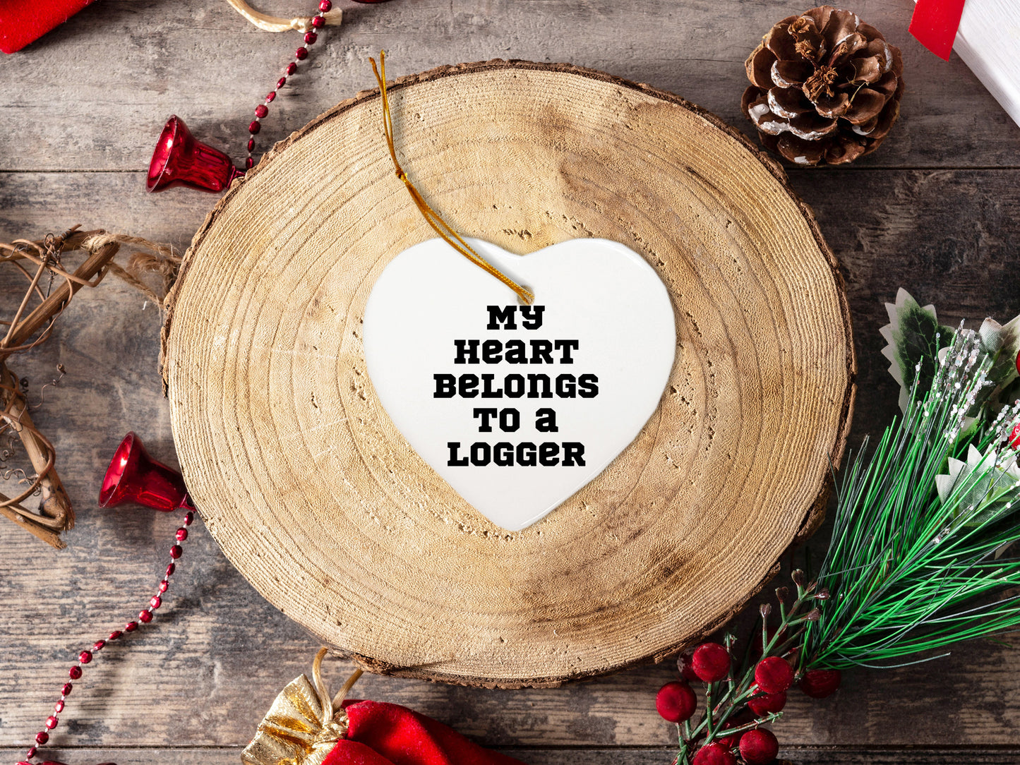 Funny Logger Heart Ornament Gifts from Men to Friends - 'My Heart Belongs To A Logger' Christmas Unique Treasures
