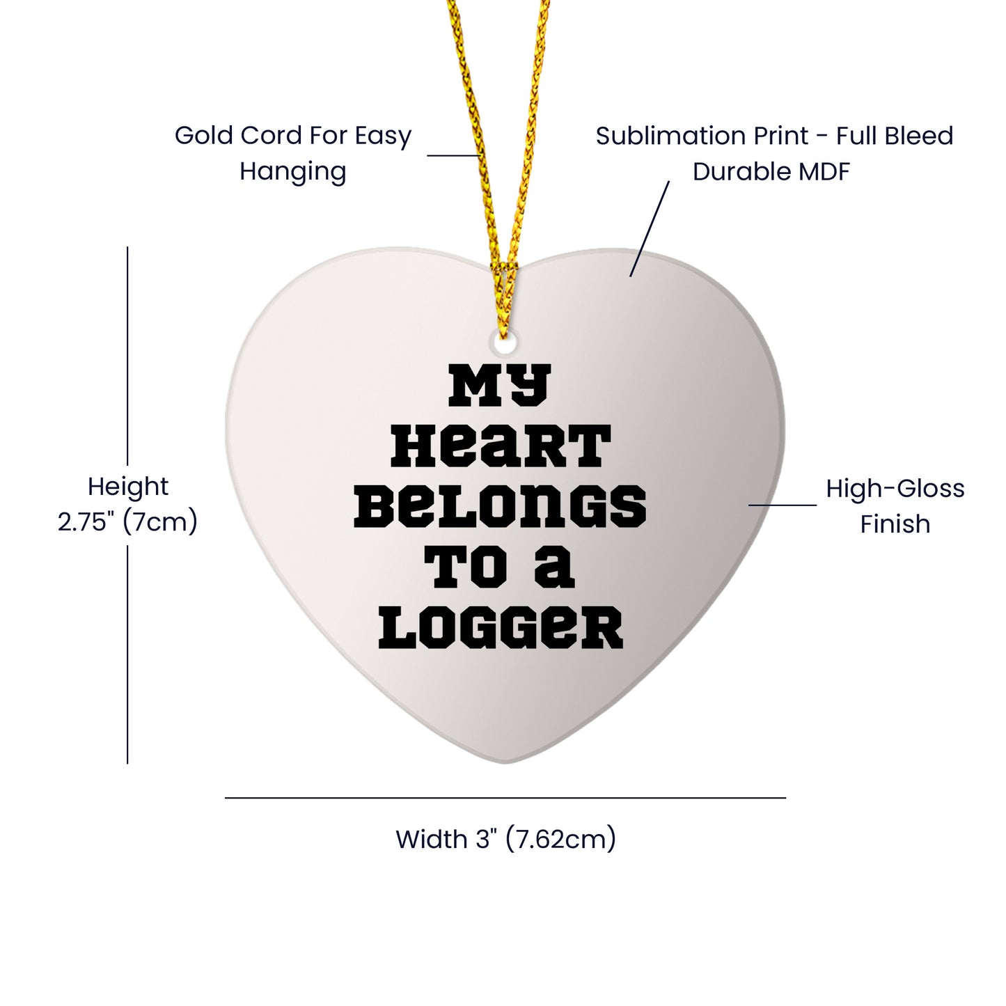 Are you a logger enthusiast or looking for a unique gift for the logger in your life? Our 'My Heart Belongs To A Logger' heart ornament is the perfect choice! Made from sturdy MDF with a high-gloss plastic finish, this vibrant ornament is lightweight and resistant to breaking, making it a great choice for households with children or pets. The festive gold cord makes it easy to hang and stress-free decorating.
