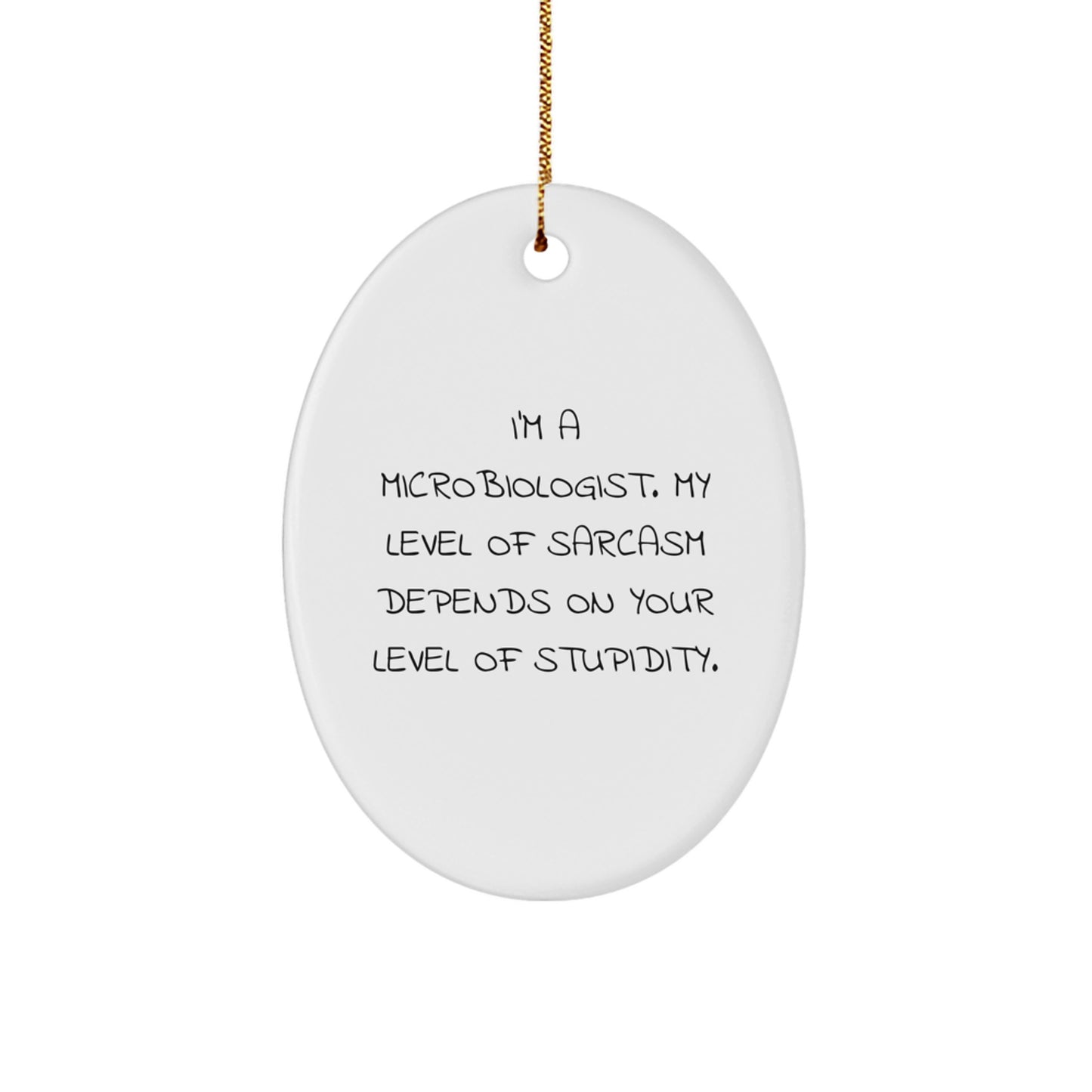 Are you looking for a unique gift for the microbiologist in your life? Look no further! This funny Oval Ornament is a great way to show your loved ones that you care. As a microbiologist, they must have a level of sarcasm that depends on your level of stupidity, right?