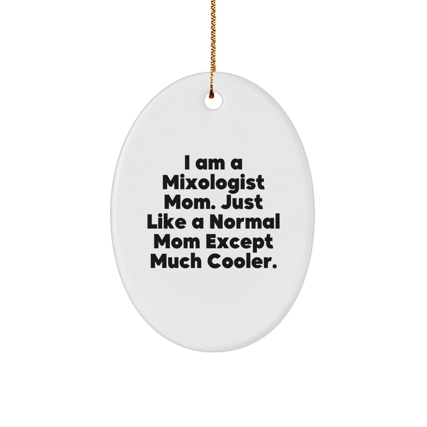 - Our 'I Am A Mixologist Mom. Just Like A Normal Mom Except Much Cooler.' Oval Ornament is crafted from sturdy MDF with a high-gloss plastic finish, ensuring a long-lasting and vibrant design.