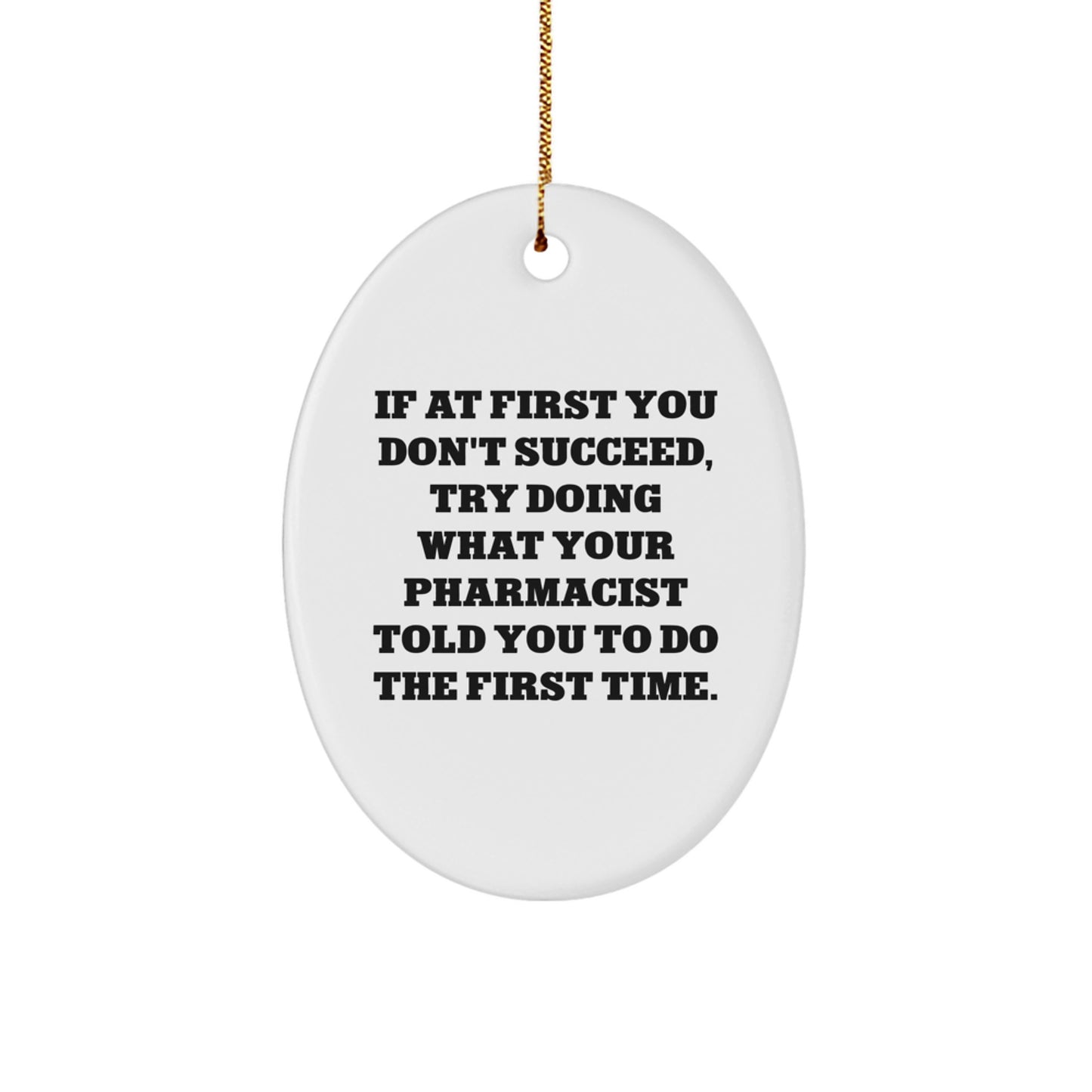 Funny Pharmacist Gifts from Family, Unique Oval Ornament, 'If At First You Don't Succeed Try Doing', Christmas Unique Gifts for Pharmacist