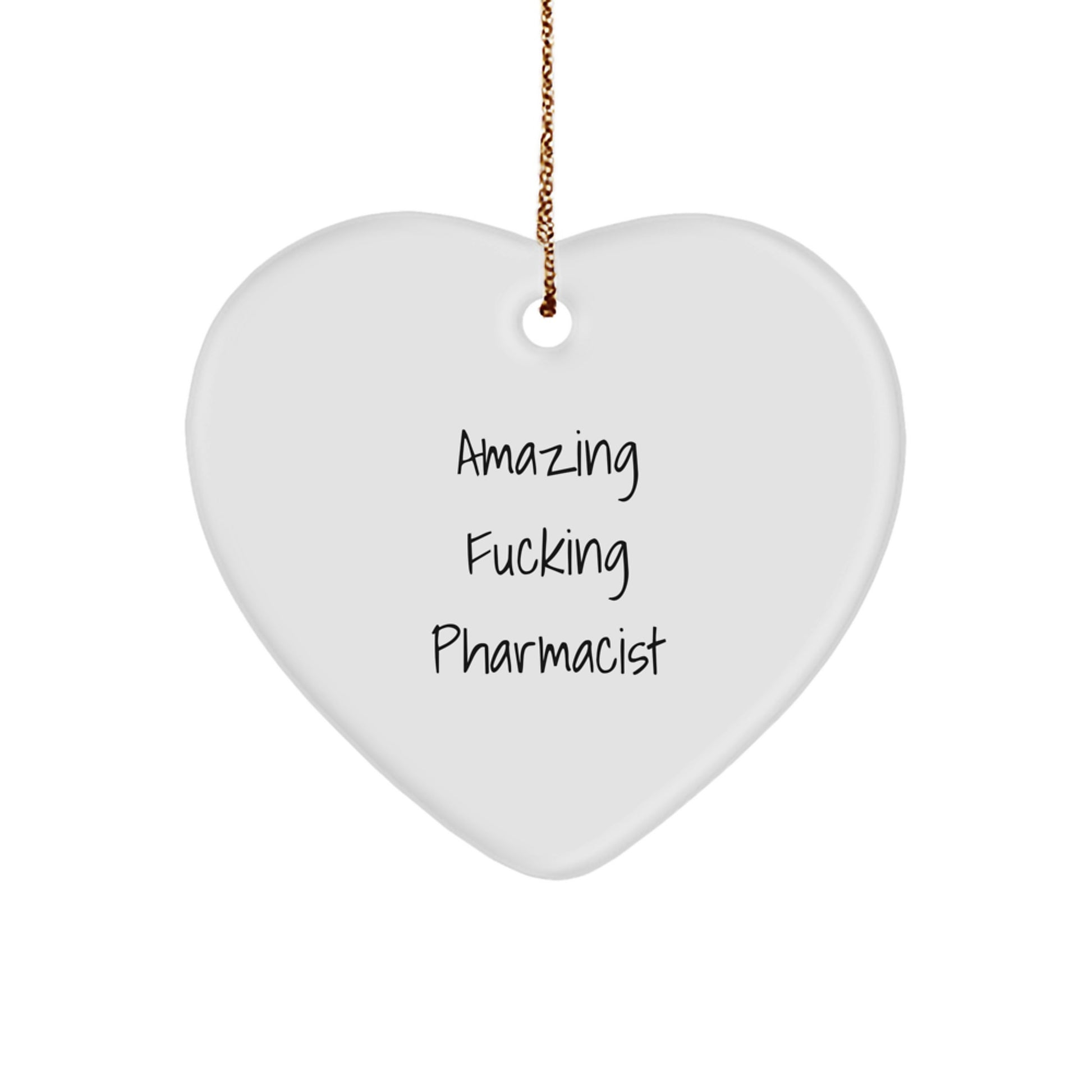 - Make a statement with this funny and unique heart-shaped ornament, featuring the quote 'Amazing F--king Pharmacist'. It's a great way to add some humor and personality to your holiday decorations.