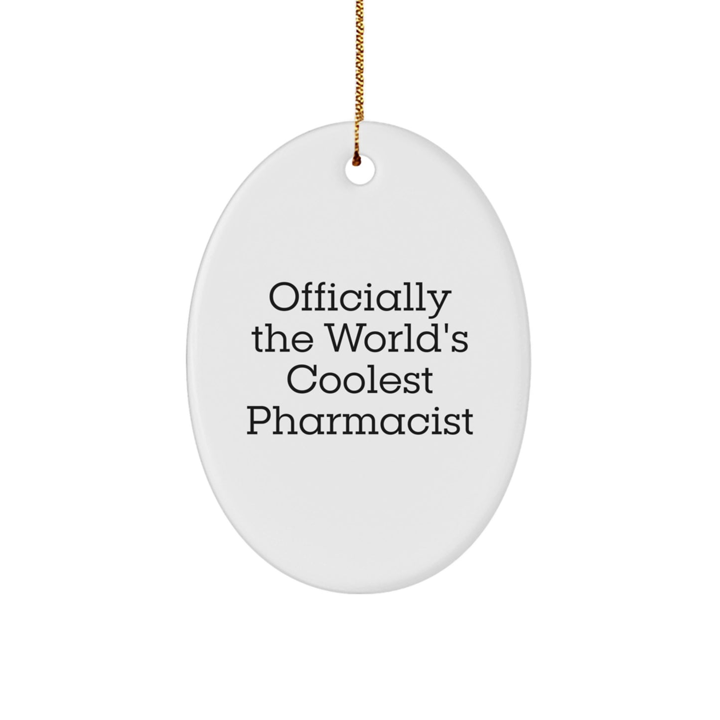 - Show your appreciation for the pharmacists in your life with our funny oval ornament featuring 'Officially The World's Coolest Pharmacist' quote. Made from sturdy MDF with a high-gloss plastic finish, this ornament is lightweight, resistant to breaking, and vibrantly printed from edge-to-edge via Sublimation.