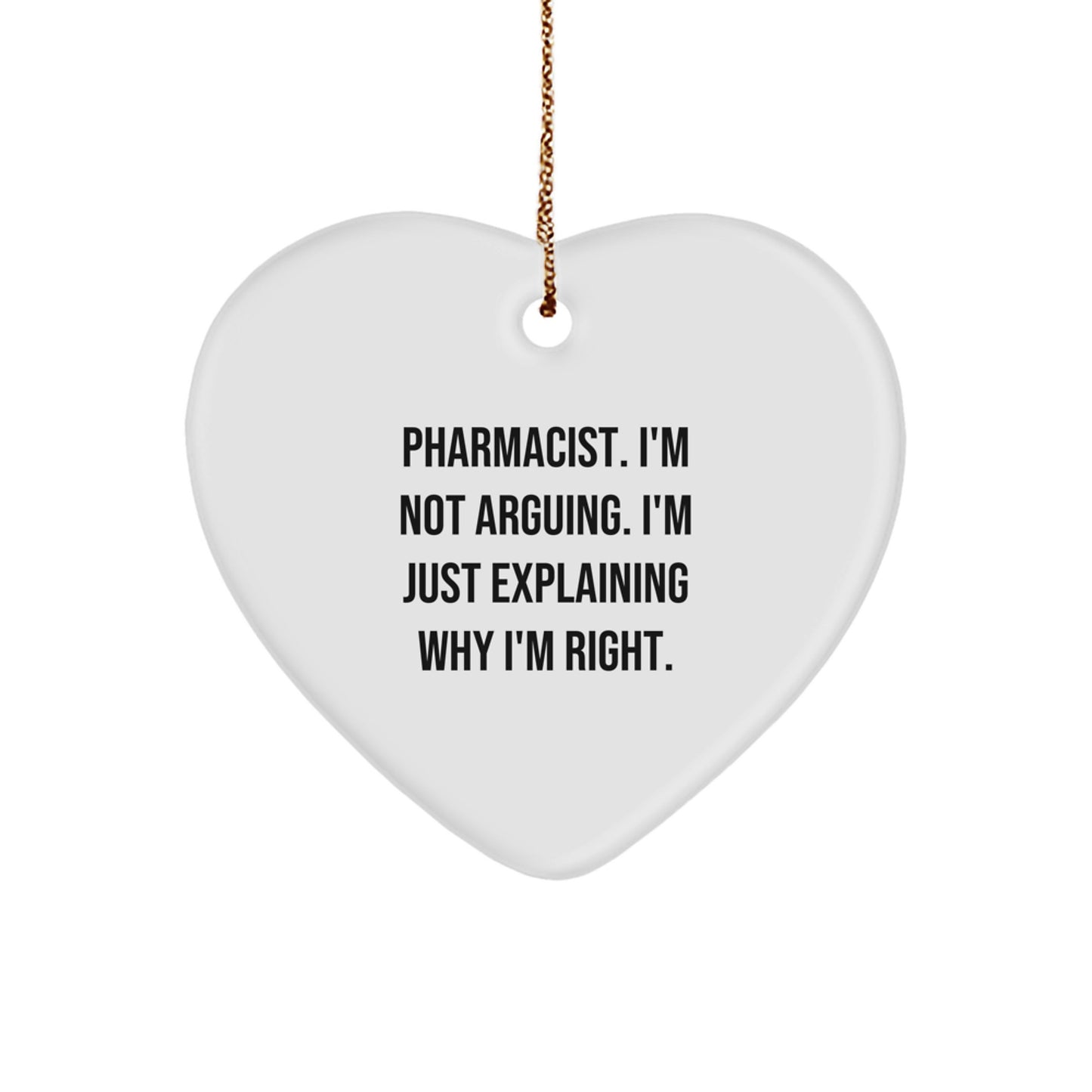 Funny Pharmacist Heart Ornament Gifts from Friends, Coworkers, or Family, 'I'm Not Arguing. I'm Just Explaining Why I'm Right.' Christmas Unique Decor