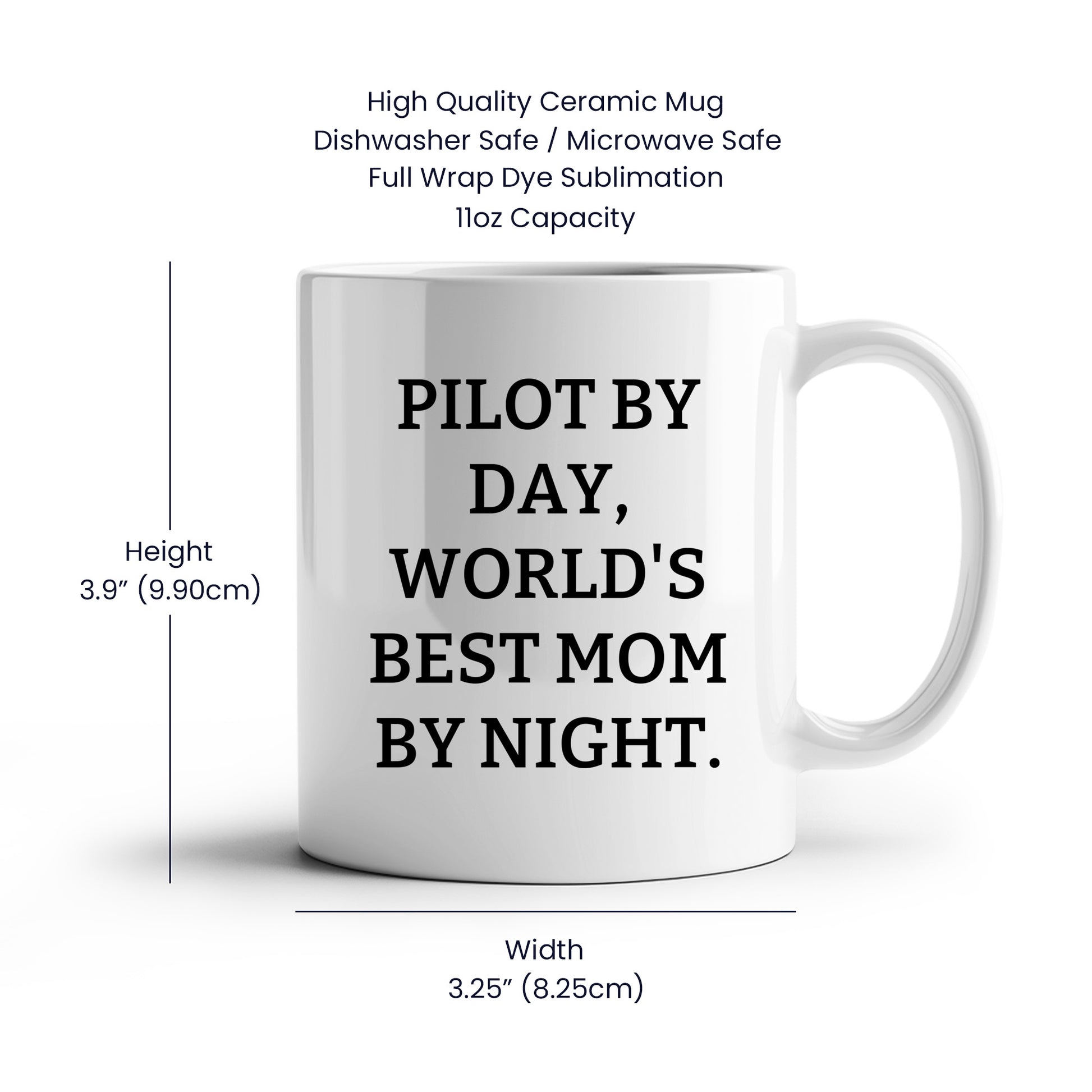 Are you a pilot or know someone who is? This funny white coffee mug is the perfect gift for any aviation enthusiast. Featuring the humorous and thoughtful quote, "Pilot By Day, World's Best Mom By Night," it’s a unique way to show appreciation for their dedication to flying.