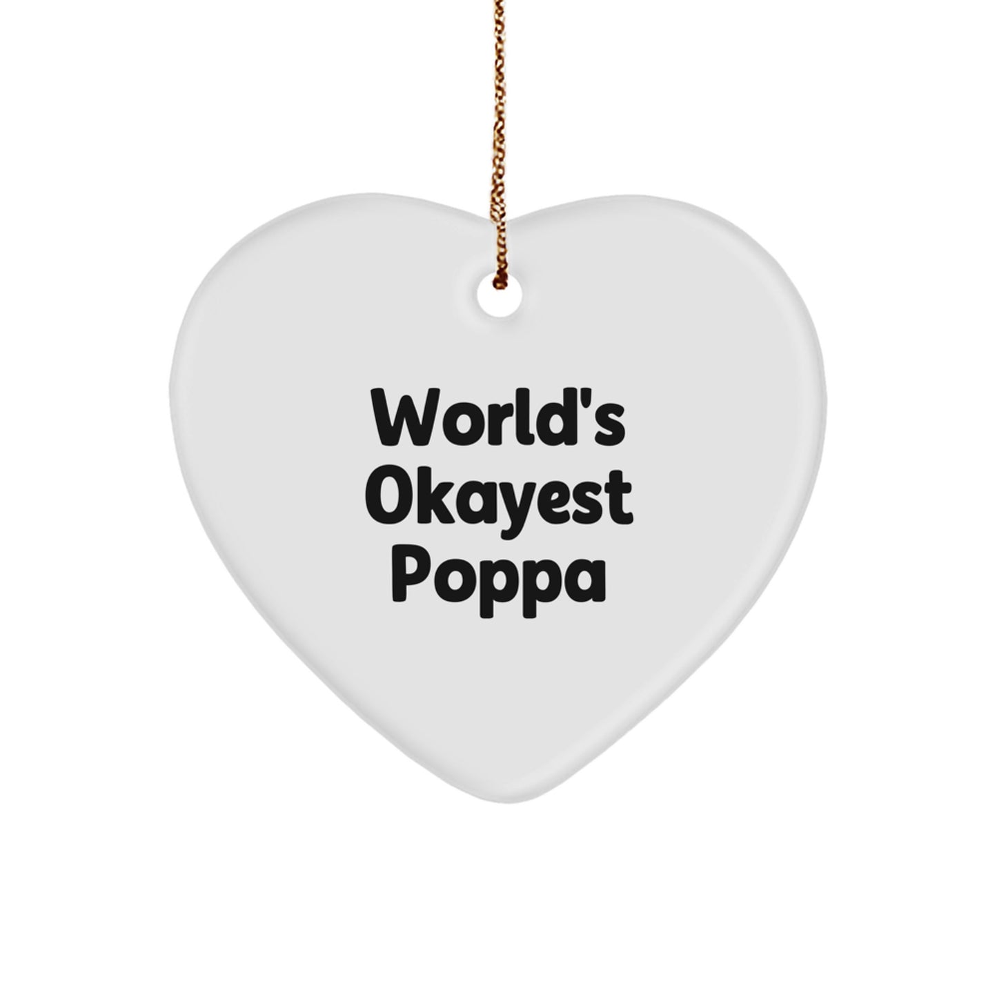 - This 'World's Okayest Poppa' Heart Ornament is a unique and thoughtful gift for any occasion, whether it's Christmas, a birthday, or just because, and is sure to bring a smile to Poppa's face.