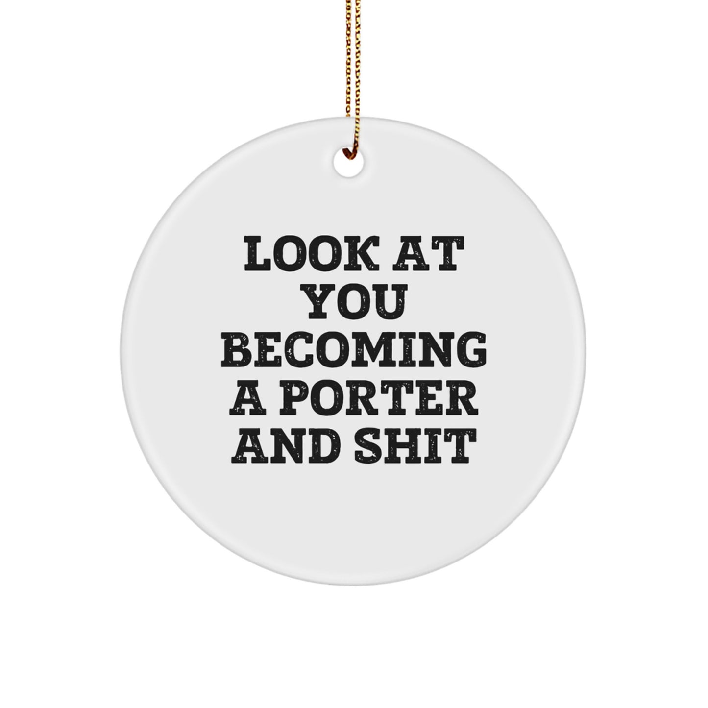 - This funny 'Look At You Becoming A Porter And Shit' Circle Ornament is a unique and thoughtful gift for the Porter in your life, perfect for Christmas or any other special occasion.